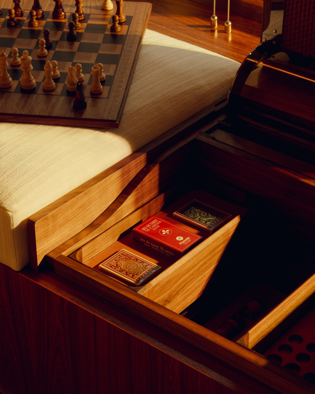 “The entire design of the yacht including each its suites have been conceived as unique spaces that break the boundaries of Orient Express’s classic decorative grammar while remaining true to its very particular codes,” d’Angeac explains. “A contemporary vision of Orient Express, that of an era in which high quality is synonymous with excellence and calls for a real aesthetic revolution.”
