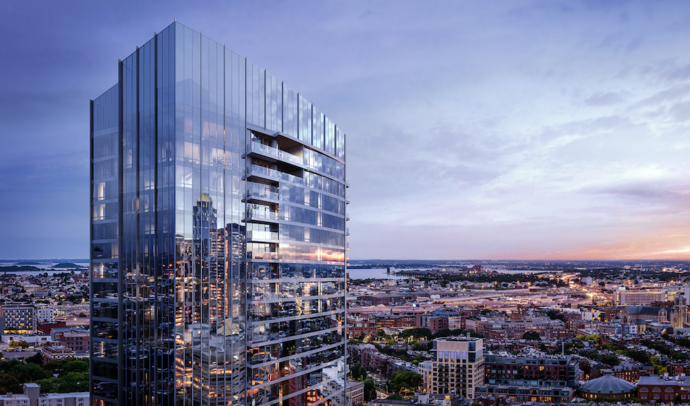 - Image caption: Exterior render of Raffles Boston Back Bay Hotel & Residences. | Image credit: Binyan Studios