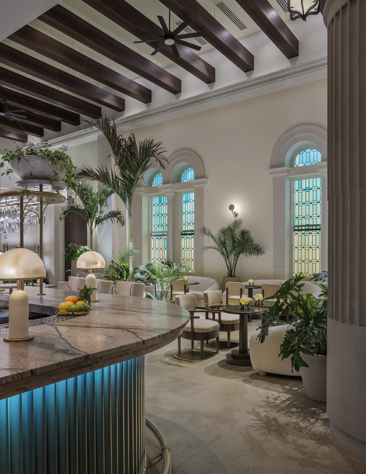 Throughout The Boca Raton, Rockwell Group redesigned spaces to add cohesion and a sense of luxury to the property, while celebrating Florida’s indoor-outdoor lifestyle. In many cases, the design details embrace and uncover original architect Addison Mizner’s Mediterranean Revival ideals to tie back to the property’s origins, in time for the celebration of the hotel’s upcoming 100th anniversary.