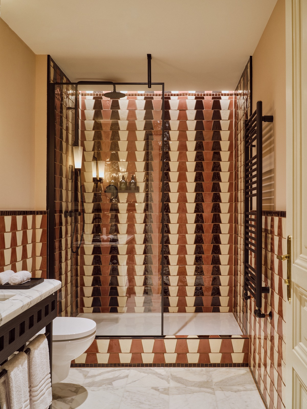 The hotel’s 76 rooms and suites are a celebration of craftsmanship, featuring hand-selected vintage Czech furnishings, sculptural lighting, and custom-made pieces by local artisans. Throughout the hotel, an eclectic mix of textures, patterns, and curated artworks tells a visual story that unfolds with each stay.