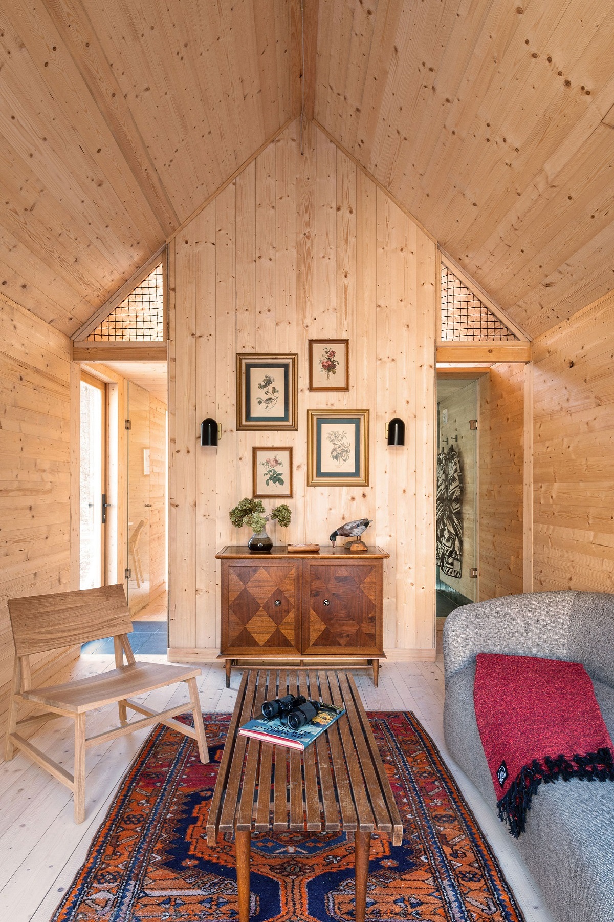 “The sentiment of Hygge, the Scandinavian word meaning a sense of contentment and cosiness, drove the design of Eastwind Oliverea Valley,” explained Stoliarova. “Think spacious common areas with large windows for natural light, high ceilings, clean minimalistic lines, and earth tones to complement the surrounding landscape. It’s the vintage furnishings and objets d’art within each of our spaces that are vital to our storytelling and make subtle statements. In curating, I was inspired by the discerning eyes behind a number of female-founded boutiques.”