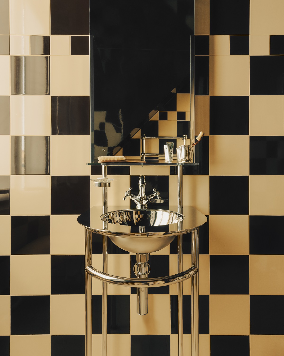 The bedrooms are ultra-functional – taking inspiration from furniture designer René Herbst. Meanwhile bathrooms have been designed in a very graphic way, with chequered tiles in the showers and custom designed basins in polished stainless steel inspired by train cabins. The hotel has been filled with handpicked
