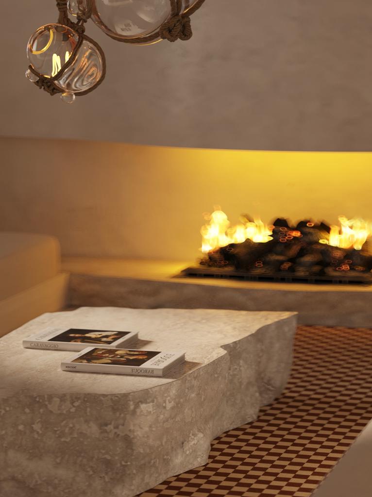 Fincadelica Xarraca offers nine elegant and airy suites all with beautiful sea views and terraces. Each is completely unique. All rooms have fireplaces for cozy winter stays with huge bathrooms and are completely light filled. Showstopper bedroom suites include an enormous 110 square metre penthouse, with wrap around sea views from its terraces. Making a statement are the bath tub and sinks in black clay by Studio Loho, a freestanding custom bed and two Valentine Schlegel inspired fireplaces.