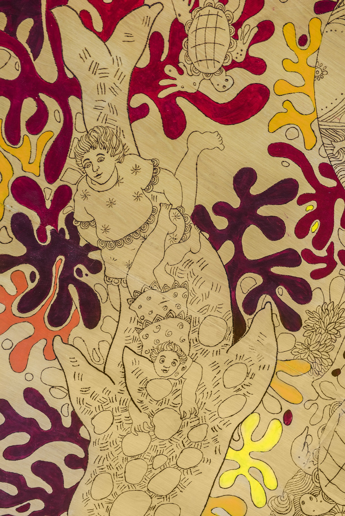 The sliding door entrance, interior walls and ceiling of dark rough cut cypress veneer, are made from YakiSugi, a traditional Japanese method of wood preservation. Each table in the restaurant is fitted with custom designed Manta Chairs as an ode to the magnificent Manta Ray, while the delicate lace of wire and lights floating on the ceiling are like bioluminescent dinoflagellates, plankton that form the basis of the marine food chain. In the entry hallway, guests can admire the coral-inspired ceramic artwork that celebrates the endangered reefs around the world and a second, knotted hemp seagrass piece that speaks of new life from old, and how these beds are breeding grounds for a multitude of ocean species.