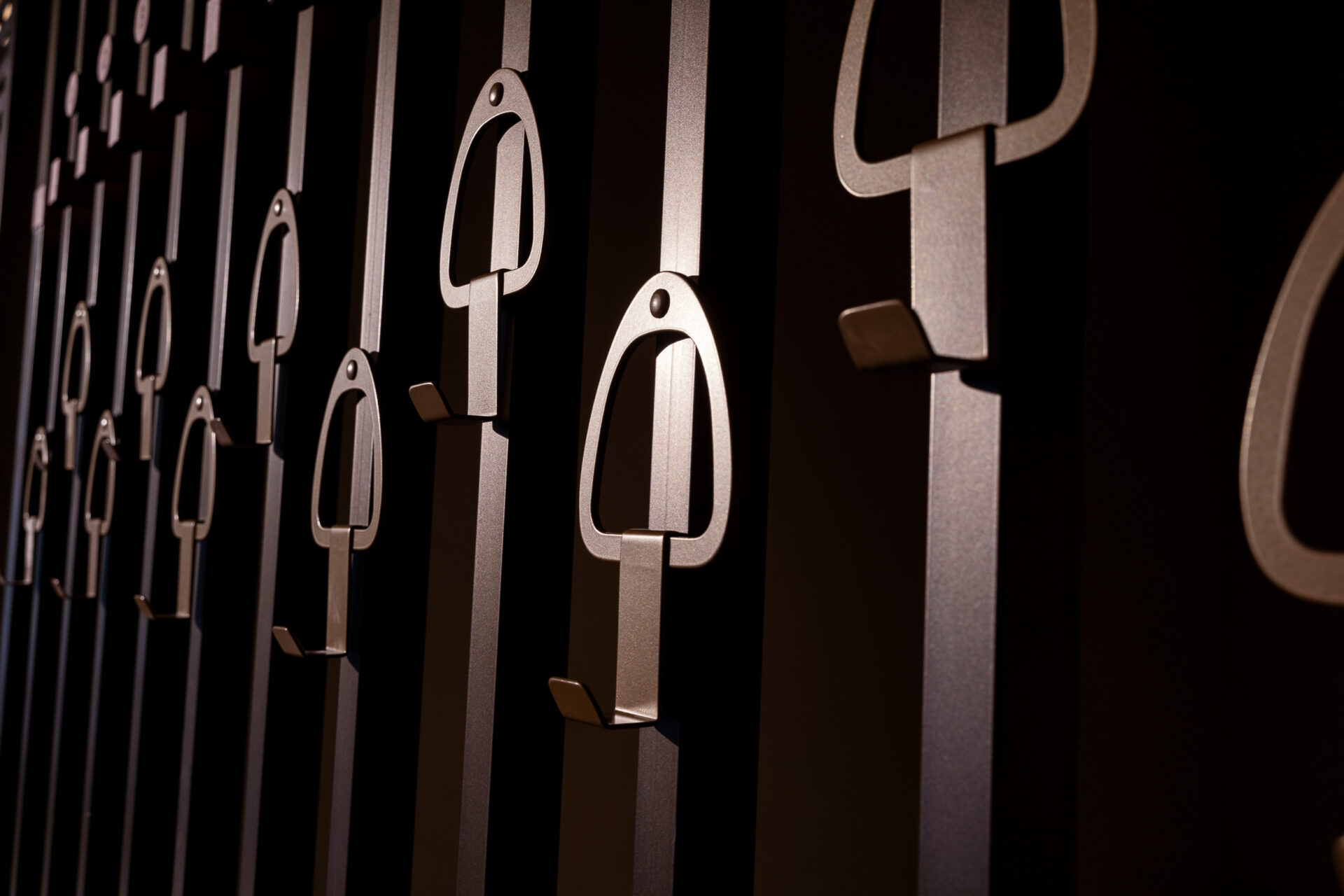 Inside, the spirit of the stables lives on – not as nostalgia, but as functional ornamentation. Equestrian motifs are thoughtfully reinterpreted: leather bridles inspire the flowing lines of custom seating, while stirrups and bits become sculptural robe hooks. Old iron from water troughs is reimagined as travertine-effect cladding, creating a raw materiality that connects past to present.