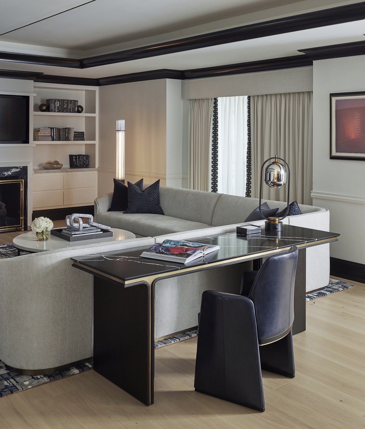 Chicago’s Waldorf Astoria is debuting its new look after an extensive renovation of the hotel’s guestrooms, lobby, spa facilities and restaurants, all spearheaded by award-winning interior design and architecture firm KTGY Simeone Deary Design Group. Located in Chicago’s exclusive Gold Coast, the latest incarnation of the château-like hotel continues its stylish legacy, led by firm principals Lisa Simeone and Gina Deary, who were also responsible for the original design in 2009. The duo credits the earlier project, originally completed as The Elysian Hotel, for informing how they approach projects today and for allowing them to break the typical rules of hotel design.