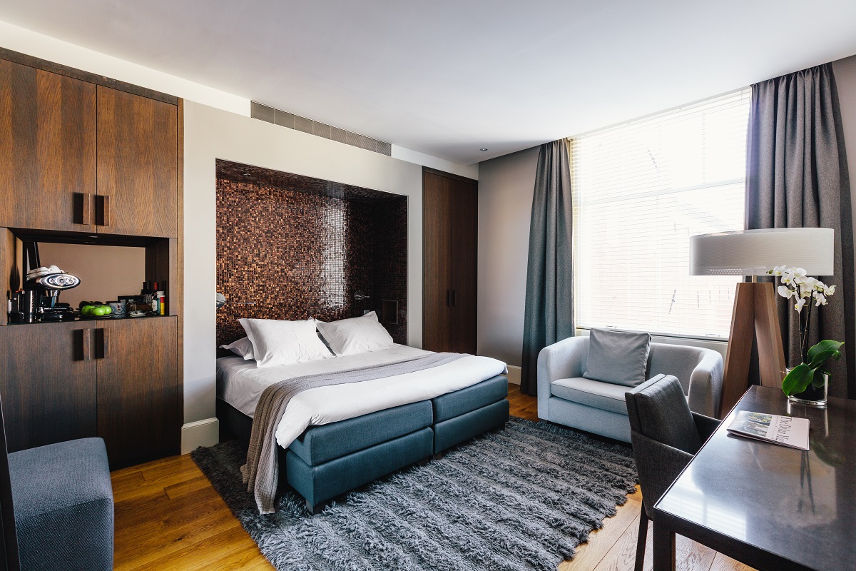 Located in the heart of the ‘nine-streets’ shopping area on the prestigious Keizersgracht canal, The Dylan is perfectly located in Amsterdam for exploring the city’s cultural and historic sites, as well as its vibrant gastronomic scene. The entrance to the hotel is discreet, through a stone arch, across a pretty courtyard with potted flowers and plants.