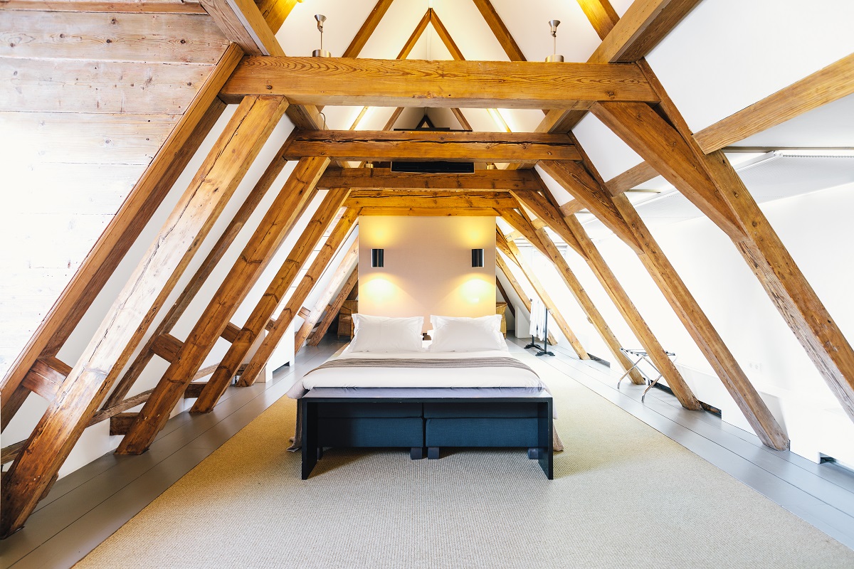 The decor inside is contemporary and chic with features such as wood paneling and floors, leather furniture, velvet soft furnishings and wood beams throughout. There are only 40 bedrooms, each one with its own unique style, split into four main interior categories. There’s the ‘Loxura’ set, modelled on the copper colored Loxura butterfly, the ‘Loft’ bedrooms featuring the building’s original wooden beams, the ‘Amber’ rooms inspired by the precious stone, and finally, the ‘Serendipity’ rooms, decorated in warm shades of brown and grey with lashings of luxurious fabric. The entire design encapsulates the hotel’s style and spirit, marrying old-world charm with contemporary style.