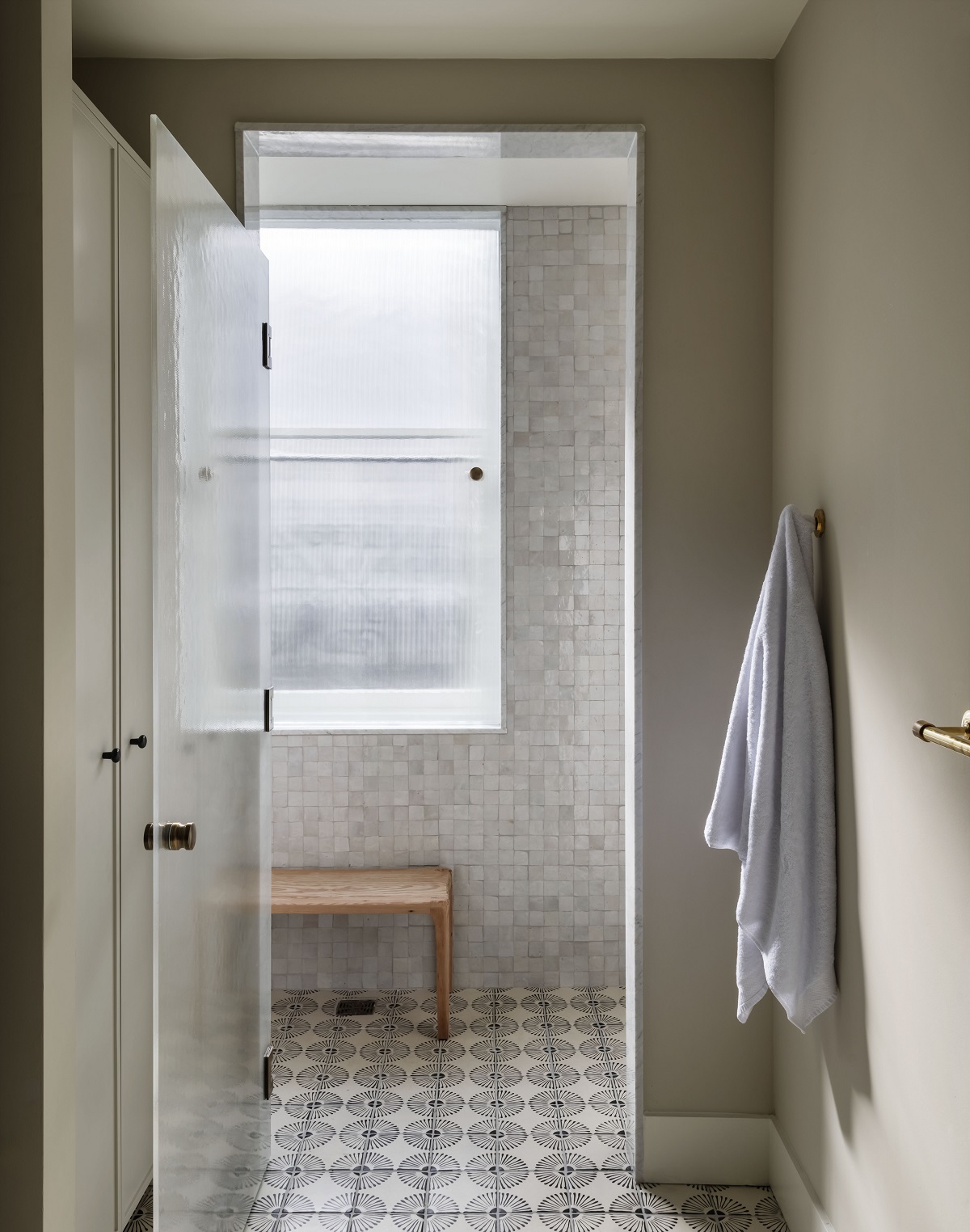 The bathrooms all feature unlacquered brass Waterworks fixtures, hand-painted terracotta Moroccan floor tiles, luxurious walk-in showers with Clé Zellige tiles, and black walnut vanities with honed Arabescato Calacatta stone. All rooms, suites, and residences include washers and dryers and ample closets. The Lequeux-Williams House penthouse residence features an open concept, separate king bedroom, spacious living and dining area with a working fireplace, as well as a private veranda overlooking Ellis Alley.