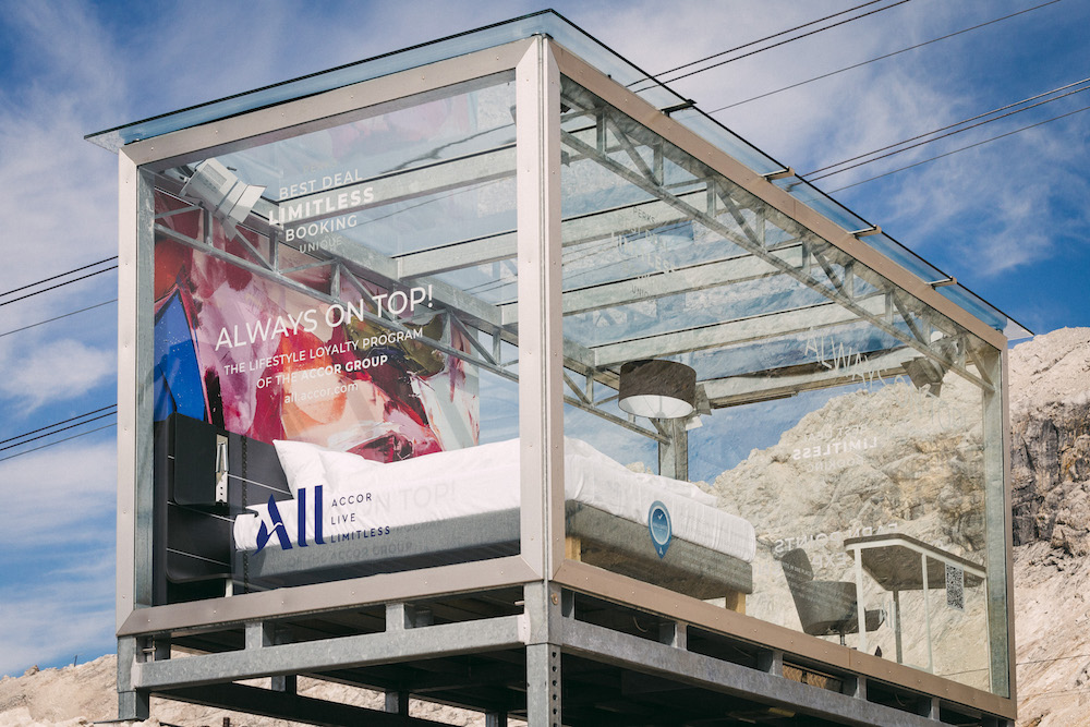 Accor, in a bid to raise awareness of its ALL – Accor Live Limitless campaign, has installed a glass box that contains a fully-furnished hotel room on the top of Germany’s highest mountain. But you can’t stay here (not yet anyway)…
