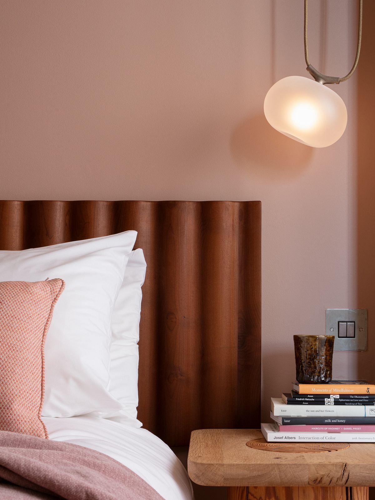 In addition to Jan Hendzel Studio’s work, a selection of British brands have also supported the project. Pickleson Paint, a new paint brand based just a stone’s throw from the Town Hall Hotel, to create a range of colours that spoke to the design and local area. You’ll see touches of East End Clay on the walls, an entirely new shade custom made specially for this project, alongside the brand’s Drunk Tahini and Tarte Tan shades. Elsewhere, the suites are complemented by lighting, upholstery and accessories from British brands including A Rum Fellow, Yarn Collective, Hand & Eye Studio, Lights&Lamps and Fariceramics. The crinoid marble used for the kitchen countertops was sourced from Mandel quarry in Derby. It is the attention to design details with local touches that tell the story, and make the space unique.