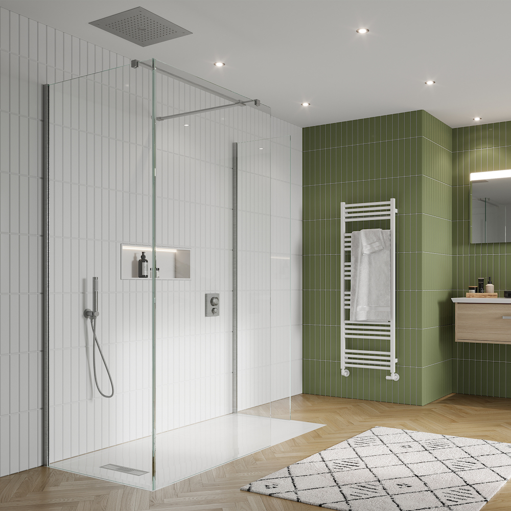 Incorporating gilded furnishings and shiny brass accents present a serious sense of luxury into any room. Crosswater’s Gallery 10 Brushed Brass Walk-in Recess Shower Enclosure works wonderfully against moody hues, as warm metallics set against deep-tone backdrops. Rich jewel tones and shadowy neutrals evoke a luxury appeal and complement each other beautifully. Pair this with the Britton Hoxton Basin Mixer Tap, which promises to add a touch of style and elevate your bathroom.