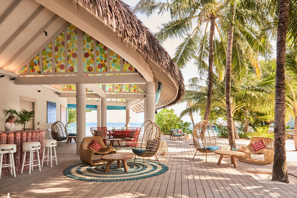 - Image caption: An open-air public area experience at Seaside Finolhu in the Maldives, conceived by Muza Lab. | Image credit: Seaside Finolhu/Brechenmacher & Baumann