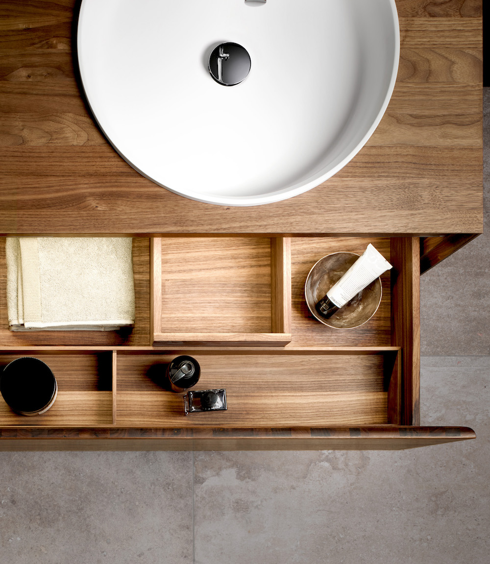 A collaboration between KEUCO and TEAM7, a company specialising in handcrafted solid wood furniture, resulted in the Edition Lignatur range. The natural warmth of the handcrafted wood contrasts beautifully with the harder ceramic surfaces and brings a note of natural luxury into the bathroom.