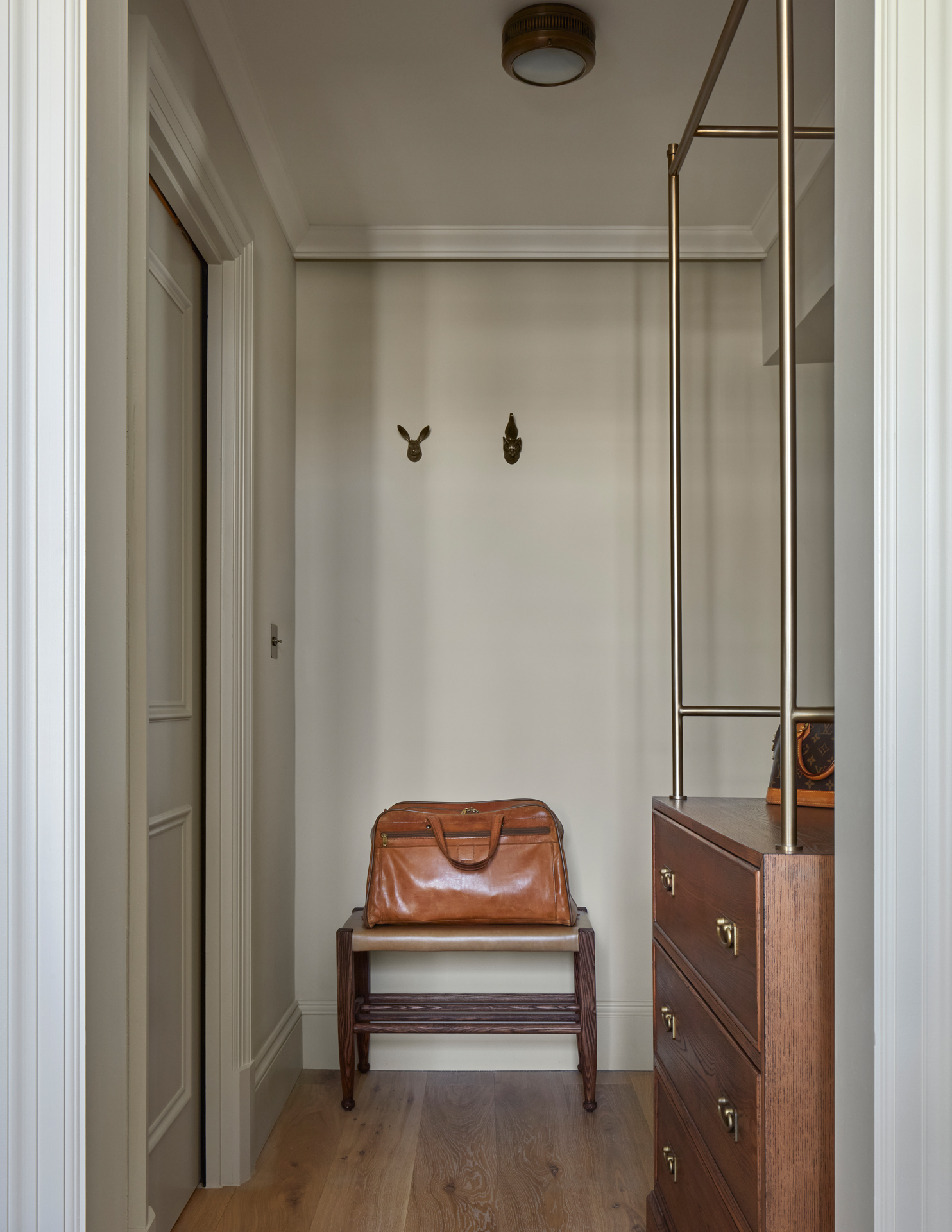 Upstairs, rooms are bright and quietly sumptuous, connected by original, ornate staircases. Delicate nods to Earl’s Court’s former ‘artist in residence’, Beatrix Potter, are woven in with gentle restraint – brass coat hooks shaped like small animal heads, for instance – details that, as James Thurstan Waterworth noted during a tour of the property, were essential to avoiding anything remotely kitsch. Some rooms feature balconies; others offer bird’s-eye views of the garden below. Bathrooms are a particular delight, with raspberry- or pearl-toned tiles, Perrin & Rowe brassware, and beautifully weighted fixtures that bring a sense of depth and intimacy.