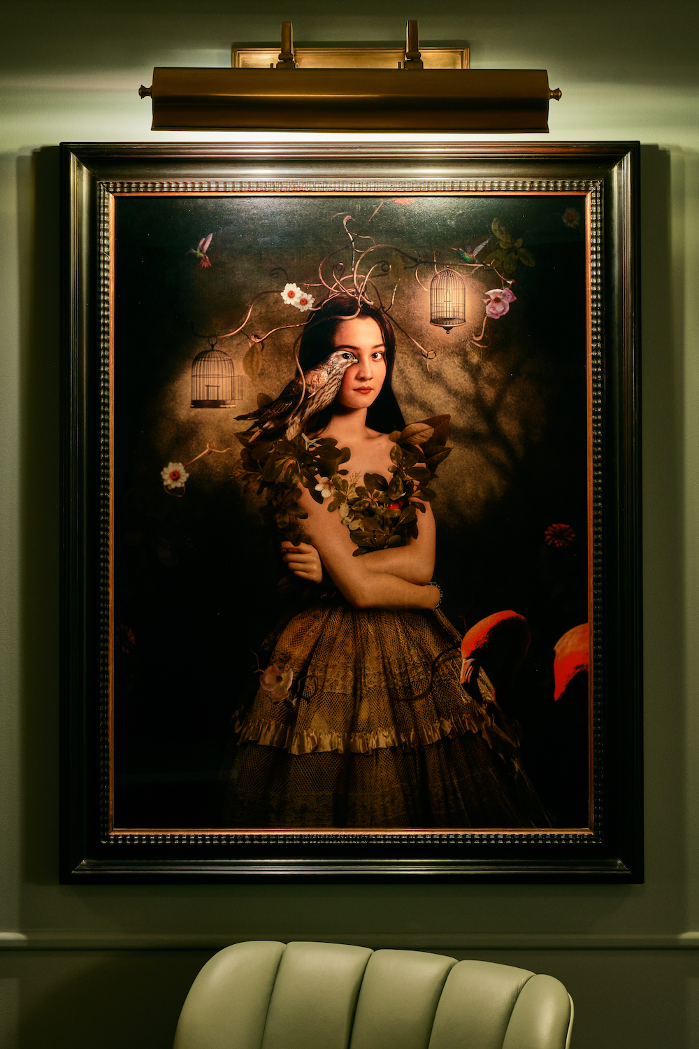 JL: I love the hand painted mural of the gold peacock, it’s just exquisite.