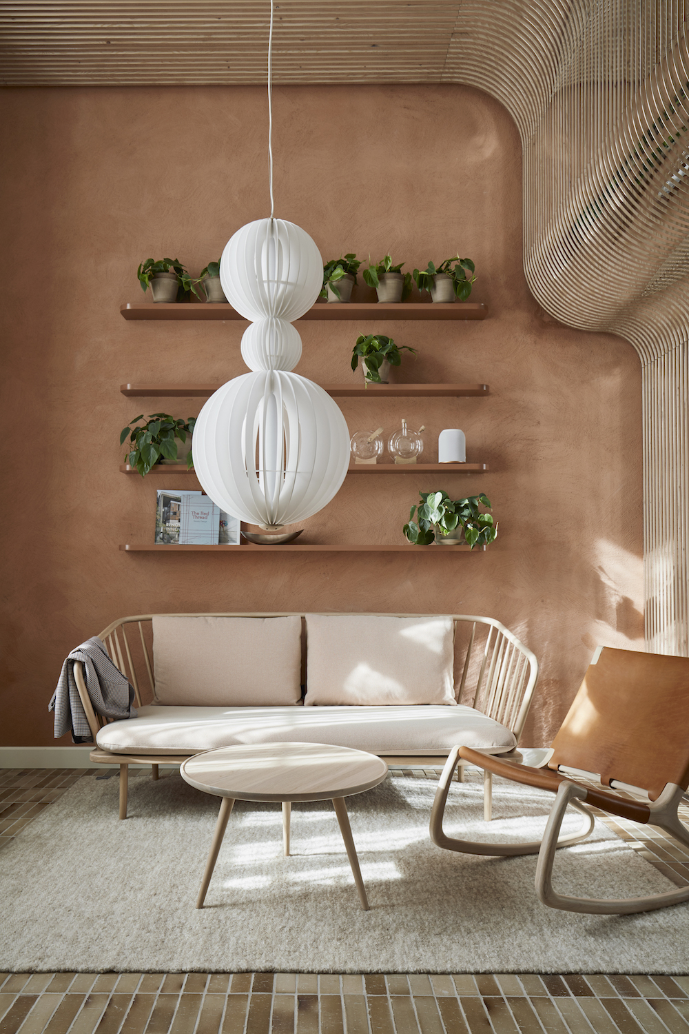 Mapping out the building’s original interior, the studio restored and reinstalled many of the key period features like the impressive windows, herringbone flooring, cornices, architraves and wood paneling. Each room and suite has been treated like a grand Danish residence, housing a sophisticated collection of custom-designed classic and contemporary furniture, alongside original pieces from known Danish designers Hans Wegner, Finn Juhl, Nanna Ditzel, Niels Otto Møller, Ole Wanscher and Borge Morgensen. Warmth and softness is key, with bespoke textiles, lighting and ceramics amplifying the comfort to create a calm refuge with more than a few touches of brilliance. Materials are locally and sustainably sourced where possible, with Kvadrat’s Sahco brand providing natural wool textiles that sit next to other highlights including biodegradable and recyclable linen headboards produced by Scandinavian interior textile studio Astrid.