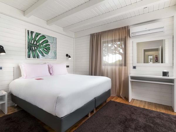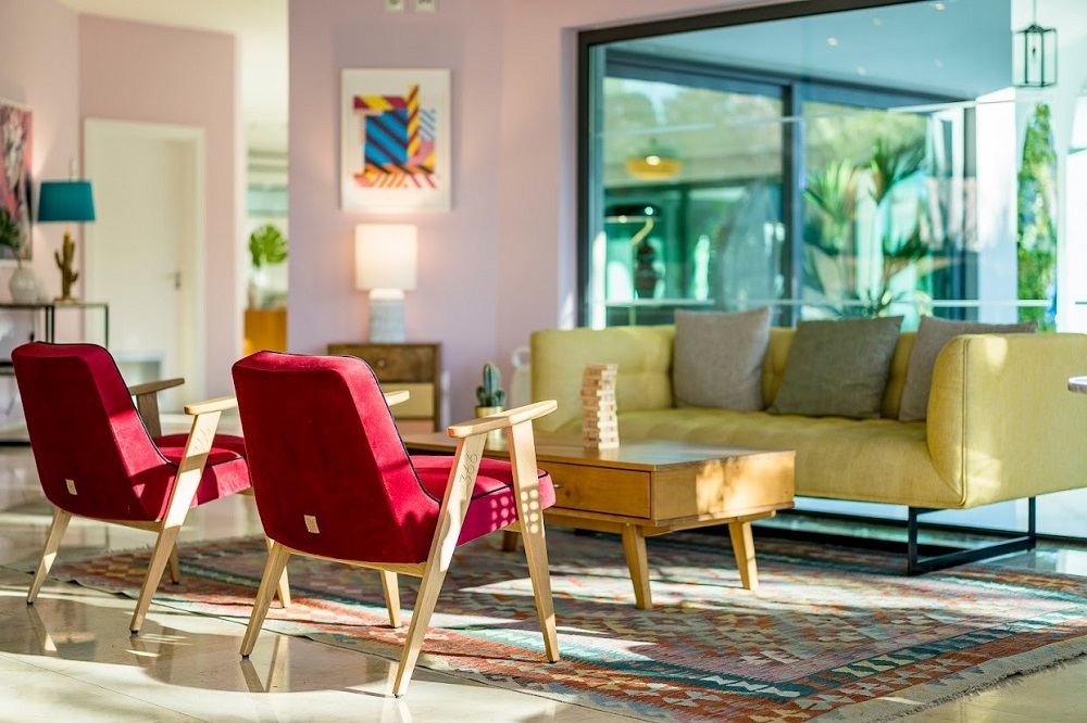 There are bright sorbet colours as guests walk in nods to Hockney on the walls, and an abundance of palm trees that all contribute to the feeling of laid-back motel living with a note of luxury. The pool at its centre looks like it has been lifted straight out of one of David Hockney’s Pool series of paintings with its tiled reflections of the surrounding palm trees, and forms the focal point of the hotel, inviting you to dive straight into your holiday. Quality and comfort are the backbone to the vibrant and relaxed décor of this design, which is made up of a combination of 74 comfortable guestrooms, and a further seven vintage style cabins. The focus throughout is on laid back comfort, teamed with quality, along with a focus on wellness that runs throughout the resort. This wellness focus has been integrated on every level of design, from the bicycles at your disposal, to the Sleep Hub in your bedroom – I must confess to getting a little addicted to the sounds of waves crashing on my bedside table!