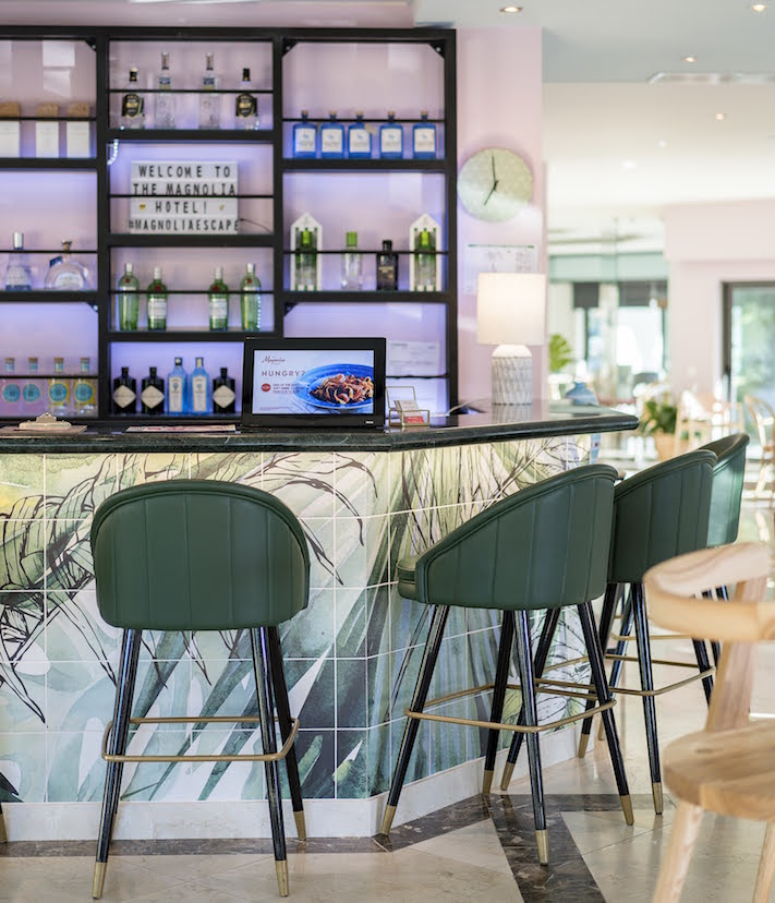 In the heart of the resort is The Magnolia Hotel – a stylish, family friendly boutique hotel designed by London-based Bryan O’Sullivan Studio, and modelled on the iconic motel designs reminiscent of Palm Springs. Driving through the entrance punctuated by the retro swimmer diving through the air, lit up in equally retro neon, the mood is set.