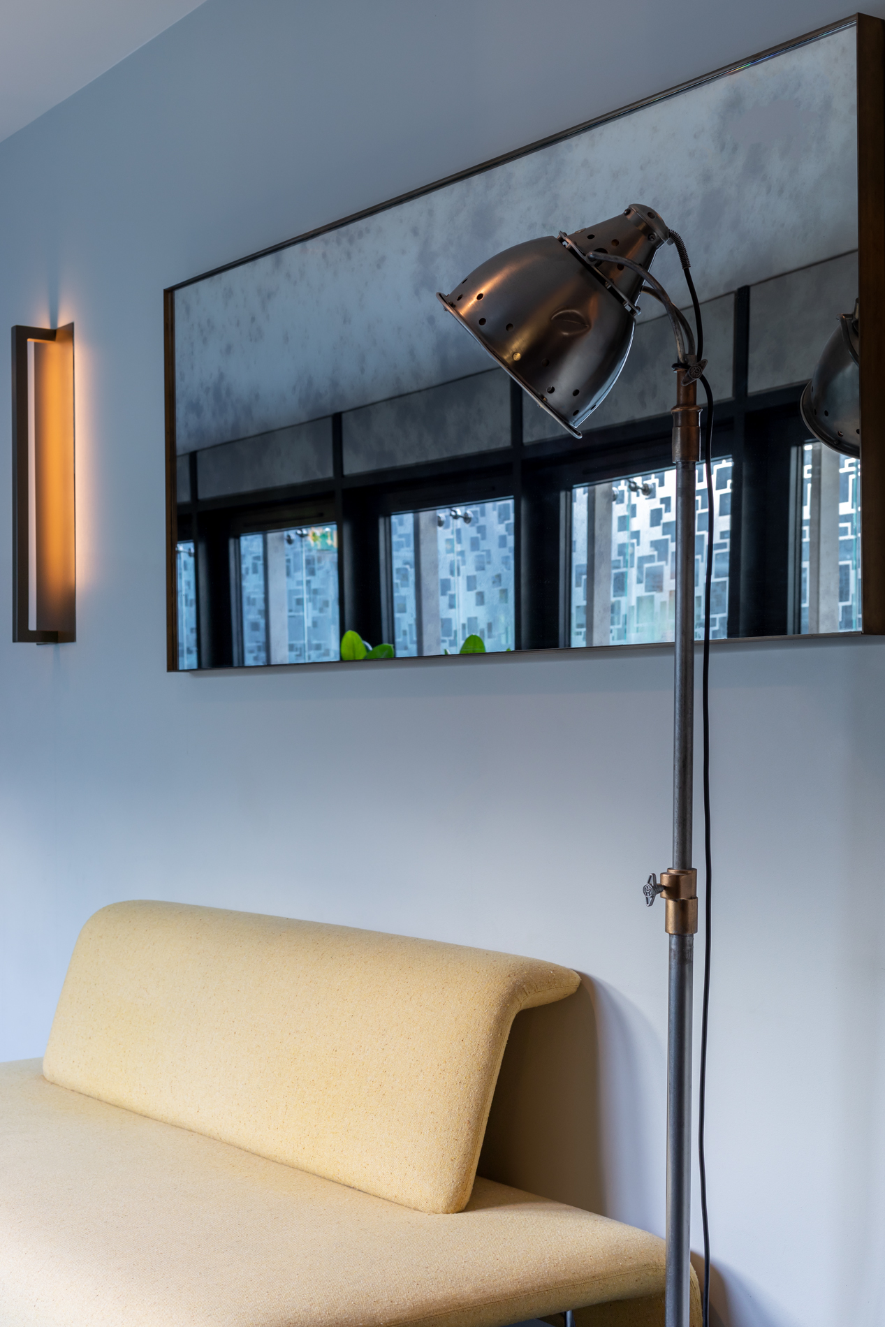 On the basement level, light still shines. Beneath the ground, an unexpected treasure: the hotel’s swimming pool. Encased in stone and bathed in soft, dappled light, it feels almost cinematic – a tranquil, urban sanctuary below the bustle of Bethnal Green. And, though the pool is a modern addition to the site, the building’s heritage continues through in the design, with the original brass filigree grates on the upper floors replicated here.