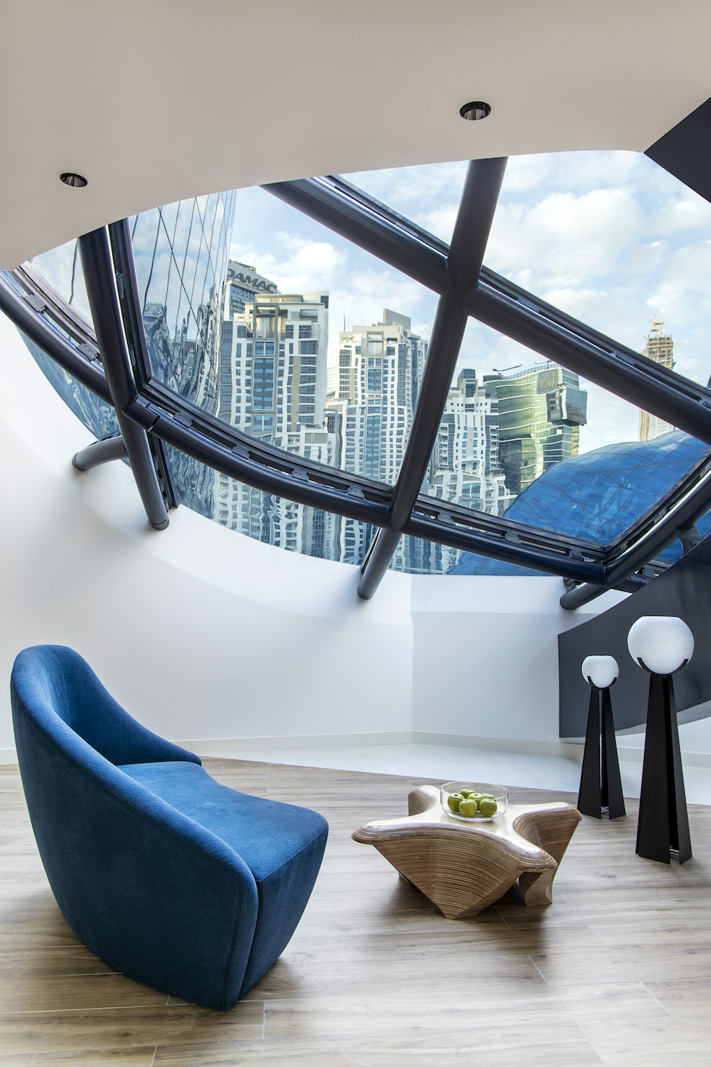 - Image caption: The hotel has multiple viewing spaces that act as lounge areas. | Image credit: ME Dubai
