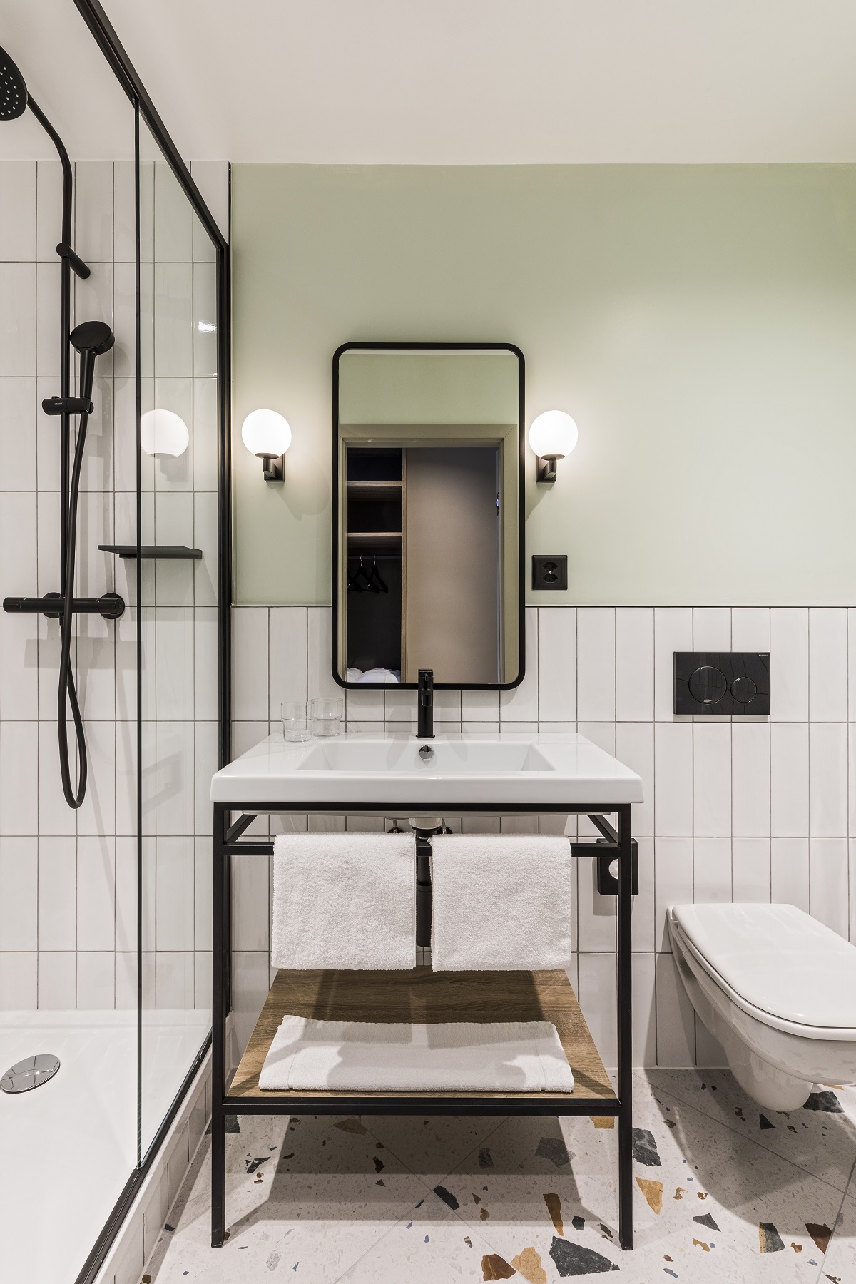 The bathrooms are contemporary chic, featuring black-framed showers and brassware, washstand basin and terrazzo floors. The decorative palette is organic and rich, with a mix of timbers, woven panelling and rich clay paint colours creating a warm, elegant atmosphere. The final palette speaks to the hotel’s setting, as timeless tones from nature are accented by textural upholstery and sheepskin balcony seating to create a layered, modern mountain style.