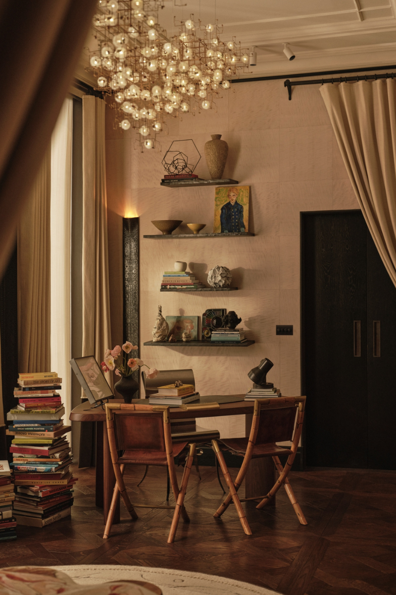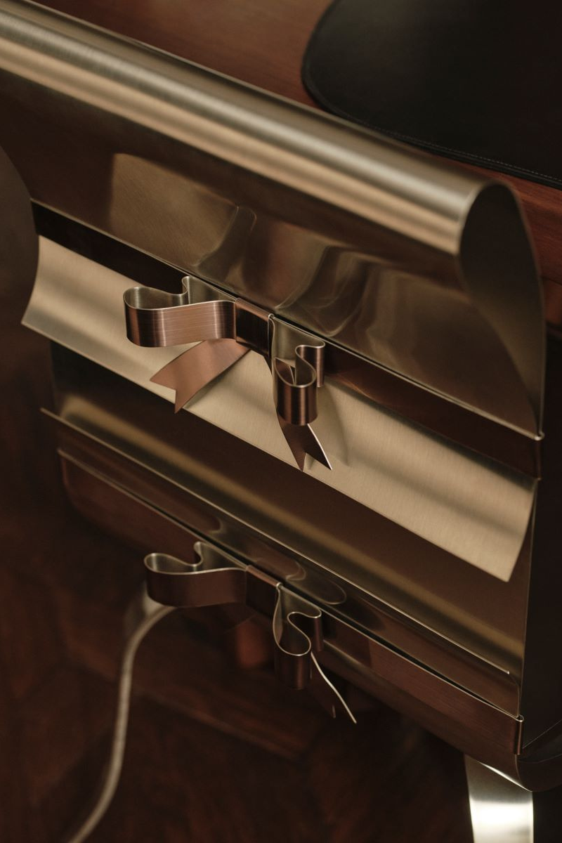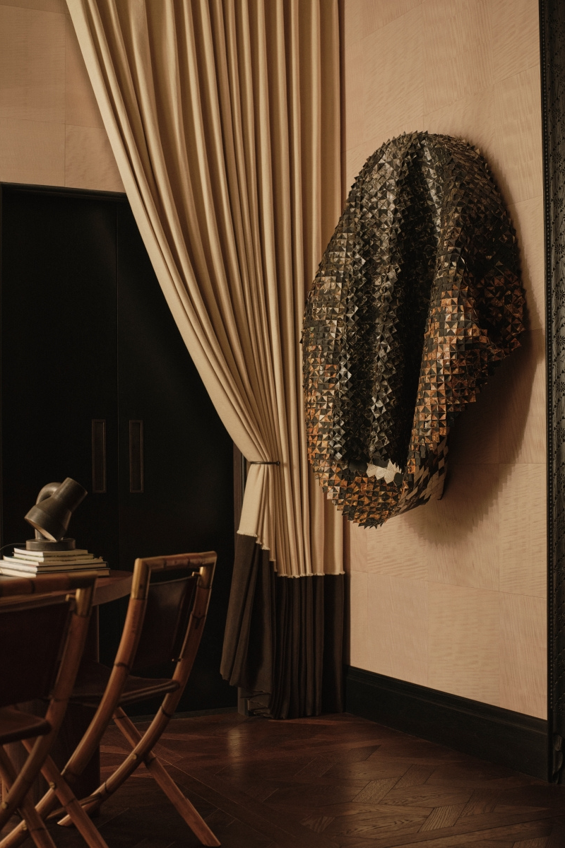Architectural details within The Curator’s Room draw on a rich lineage of craftsmanship, including intricate plasterwork by Locker & Riley, historic panels from Féau Boiseries originally designed for Jeanne Lanvin’s Paris residence, and hand-painted finishes by Angel. Furniture and decorative elements are similarly layered with intention: from Charlotte Perriand’s Sideboard and Maria Pergay’s Ribbon chairs, to Ingrid Donat’s sculptural fireguard. Each piece was created by a woman, and many are rare loans from highly respected galleries including the Carpenters Workshop Gallery and David Gill. Through The Curator’s Room, Brigitta has gladly deepened her relationships with such organisations, particularly through discovering and collaborating with emerging voices. “I’ve found that some of the most rewarding outcomes have been the ones I didn’t expect, and that’s something I really value,” she added.