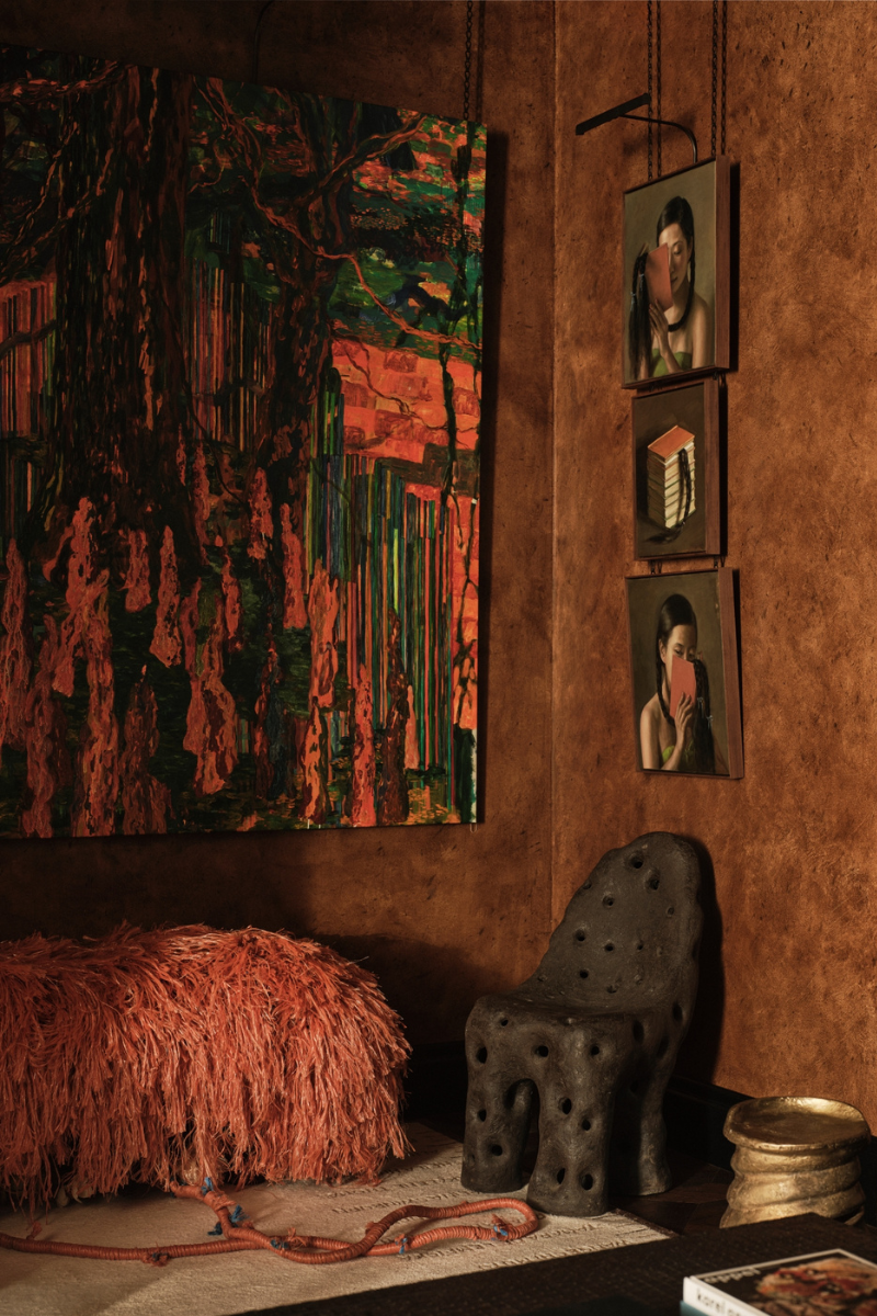 At its heart, the space is inspired by two landmark texts: Ninth Street Women by Mary Gabriel and The Story of Art Without Men by Katy Hessel – a direct response to the exclusion of women from traditional art narratives, particularly Gombrich’s The Story of Art (first published in 1950), which excluded women until its 16th edition in 2022. After reading these texts, Brigitta Spinocchia Freund, WOW!house designer and studio founder, reflected on this absence of women from written design histories and responded with The Curator’s Room. She told Hotel Designs, “The Curator’s Room became an incredible opportunity to spark a vital conversation about women in design, and also to see my own thought process through a new lens.”