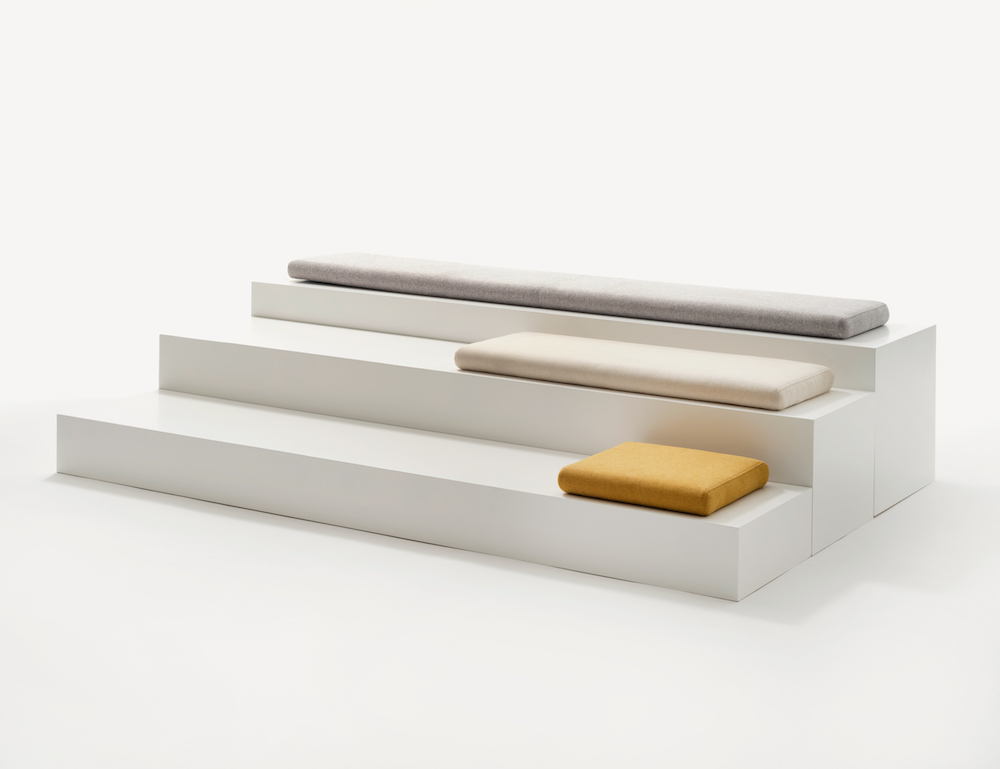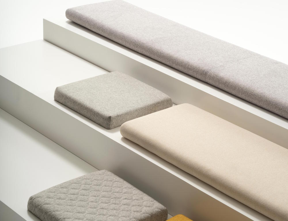 Featured at their London showroom, Morgan have now made their seat pads a standard offering within the Kyoto collection of dynamic linear intersecting benches. These simple, yet striking seat pads are highly versatile, turning window sills, steps and other surfaces into seating areas.