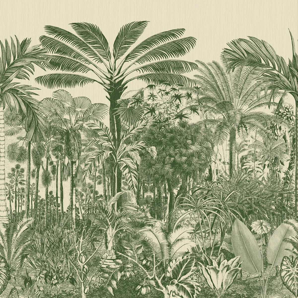 Demonstrating versatility, movement and a bond with nature, the soft sheen enhances the rhythmic feeling. The tropical decor has a visible paper structure which gives it a vintage touch.