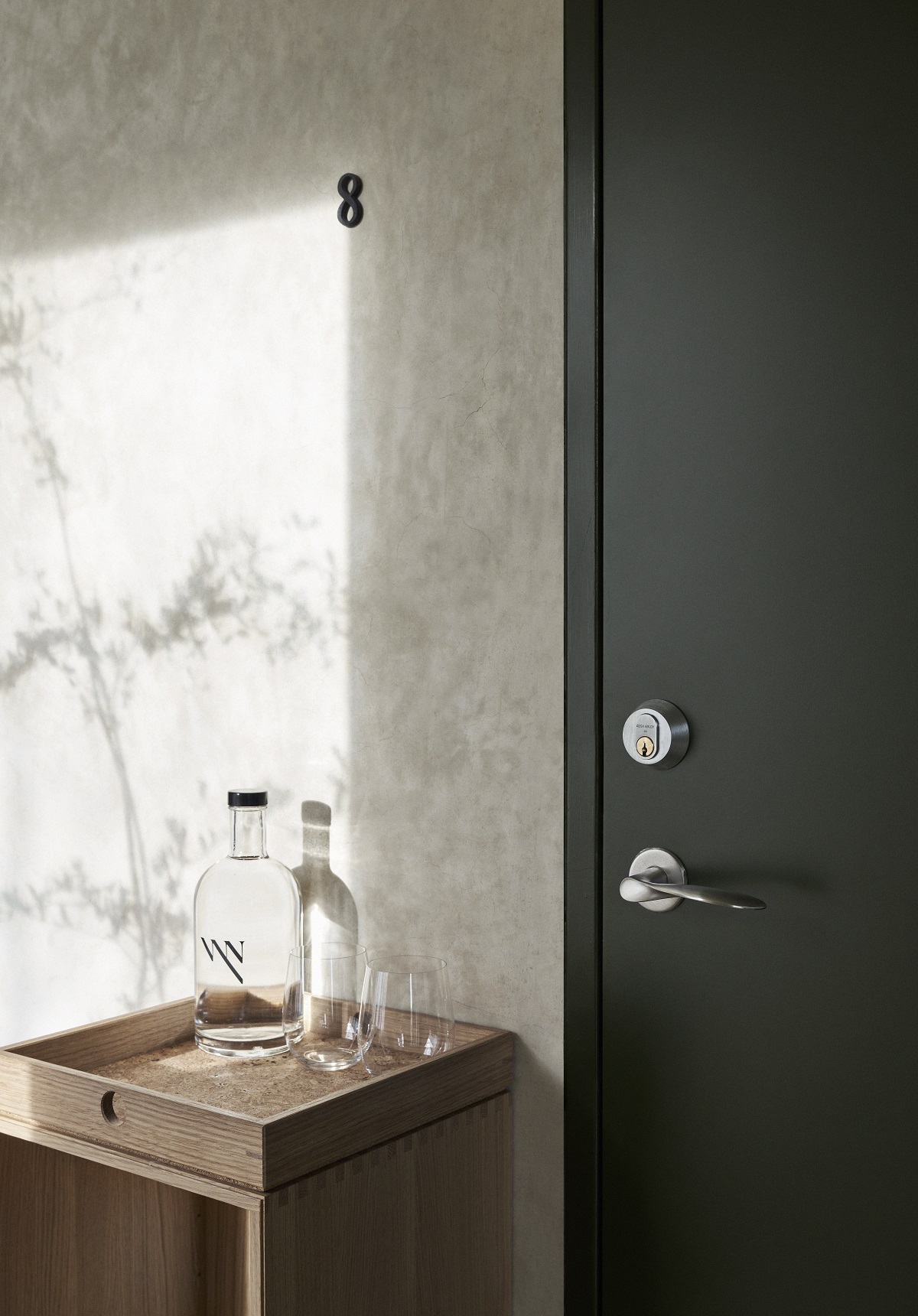 The d line handles are fitted on equally high-quality doors delivered by one of its partners, Njord Design, a Swedish door manufacturer that creates durable interior doors at their factory in Skåne. The lever handles and hardware from d line blend seamlessly with the deep green and massive oak doors and becomes an integral part of the space.