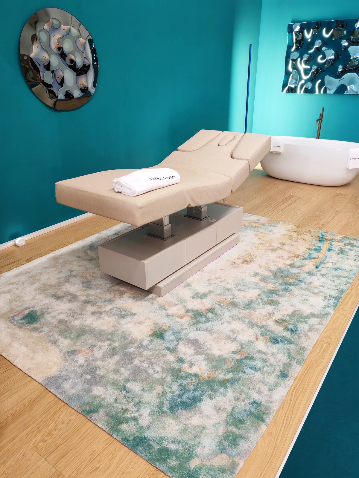 Luxury Carpet Studio was selected as a partner for supplying carpets within the ‘Wellness Nostrum’ concept, thanks to its ability to combine design, craftsmanship, and technical innovation. Three iconic collections were employed in the project: