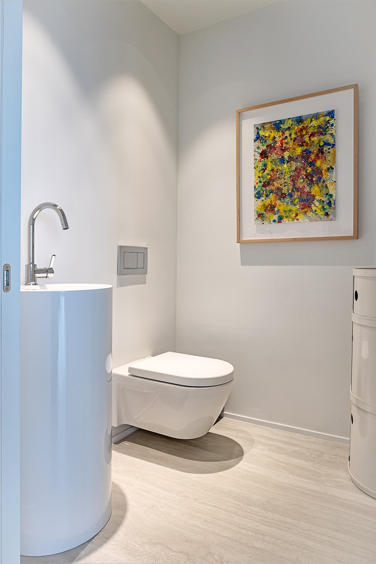 Ranges including DuraStyle, Starck 3, and Starck 2 bring the modern ambience to the fore. In the marble-lined main bathrooms, for example, the sleek, pared-down forms of the Starck 3 integrated washbasins emphasize the refined aesthetic, while the high-end guest bathrooms are graced by Starck 2 wall-mounted toilets.