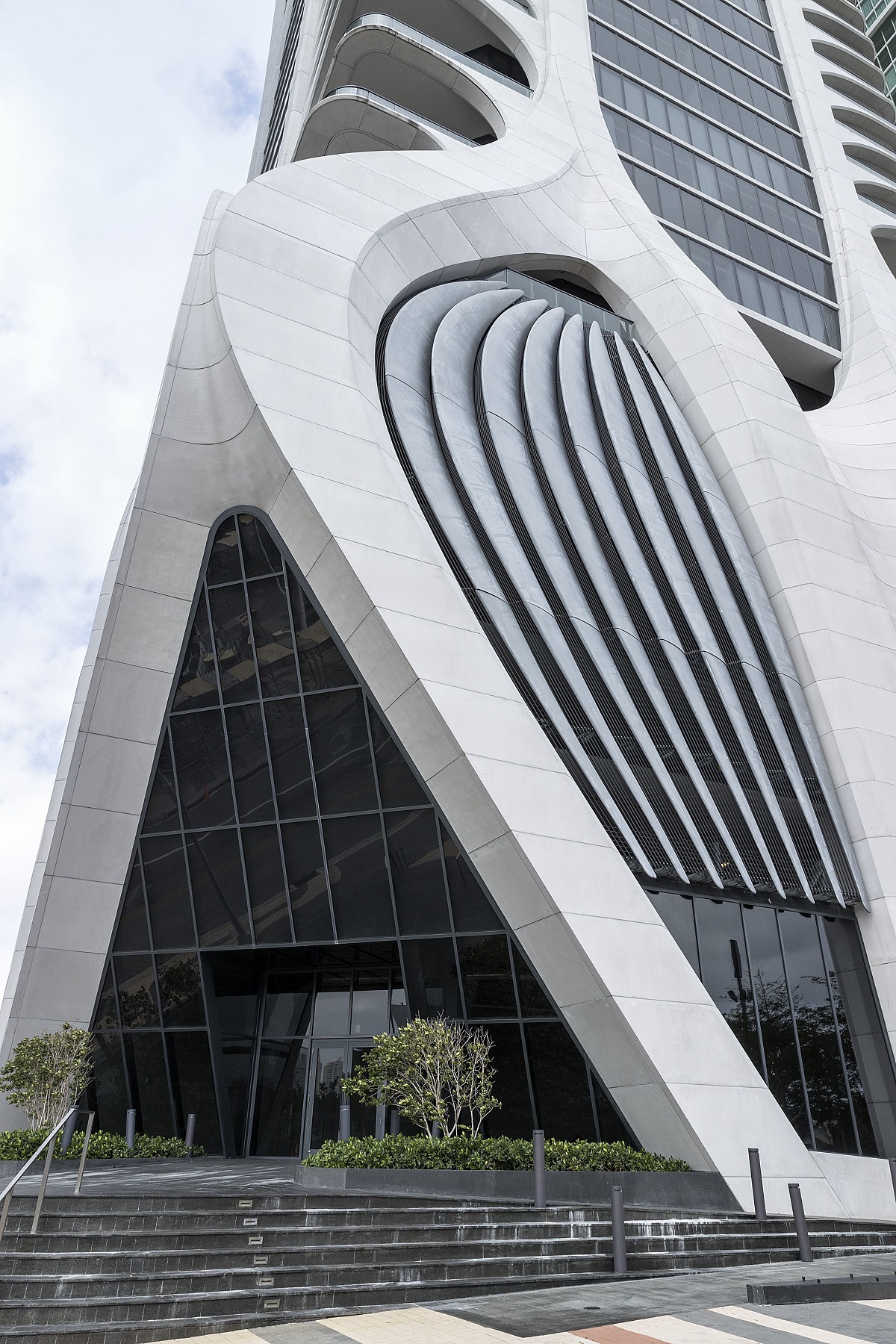 The name ‘One Thousand Museum’ refers to the prime location at 1000 Biscayne Boulevard opposite Museum Park. One of the outstanding features of this architectural masterpiece is the harmonious blend of futuristic design and organic elements for which Hadid was renowned. The most conspicuous aspect of the 216-metre tall building, is the curving white concrete exoskeleton that intricately winds its way around the building, creating the perfect contrast with the multi-faceted, crystalline façade.