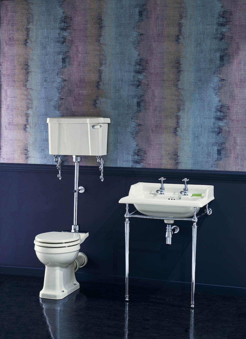To achieve a dark and decadent bathroom enlivened with pattern, combine Burlington’s Jet range with striking, exotic wallpaper. Encapsulating the deepest shade of black, the glossy ceramics seamlessly complement extravagant patterned schemes for an impressive, timeless bathroom.
