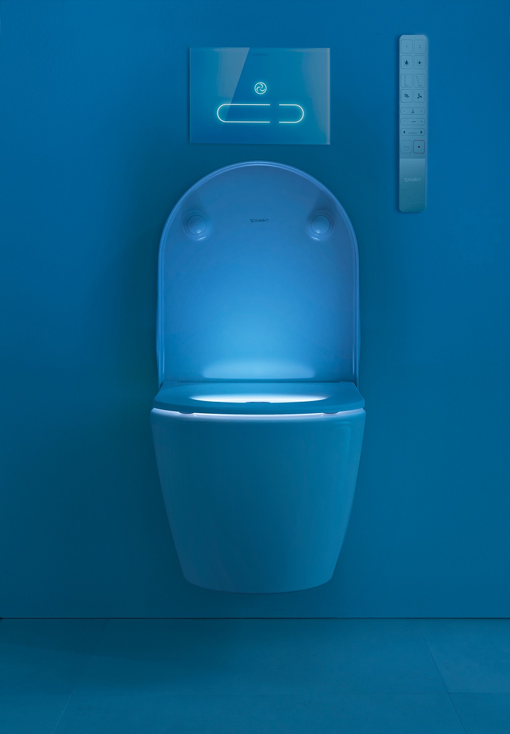 Scald protection thanks to thermostats is another safety feature that can be easily intergrated into a design. A thermostat guarantees that the required temperature can quickly be set and is ideal in cases of recurrent fluctuations in pressure and temperature in the supply pipes. A safety lock at 38 degrees Celsius protects the user from scalding. At the same time, warmer water can be obtained by pressing a safety button and turning the handle further. The C.1 Duravit faucet series by Kurt Merki Jr. includes shower-head and bathtub thermostats for exposed or concealed installation, as is also the case with B.1 and B.2. Shower systems that are optionally available with a thermostat or single lever shower mixer are a practical all-in-one solution. Holistic bathroom design is ensured by B.1, B.2, and C.1, each perfectly match all Duravit series with their soft, striking, or simply unpretentious design language. Polished chrome surfaces ensure a pleasant feel on all models. The combination of the anti-slip and flush-fitting base, illumination, and a thermostat from the Duravit portfolio creates a safe environment, consistent with the design concept of the holistic bathroom.