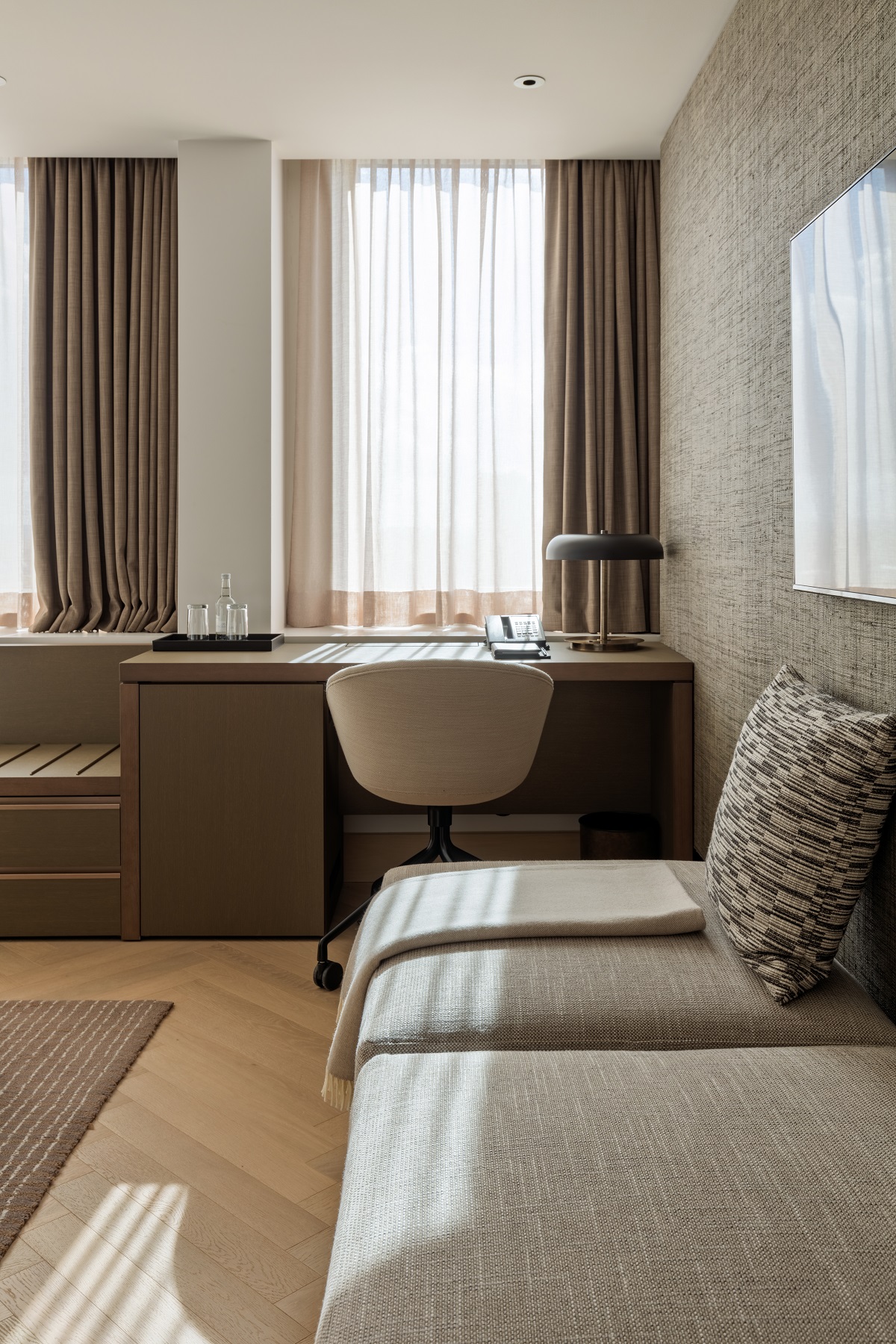 Having been hired as manufacturer for the bedroom furniture of the Royal Garden Hotel in Kensington, Ligne Roset Contract furnished 217 bedrooms across 10 floors, with over 1500 individual furniture items manufactured and delivered as part of a phased roll out. Designed by architects and designers Viewport Studio, meticulous detail was required to bring to life the vision for this beautiful hotel overlooking Kensington Palace.
