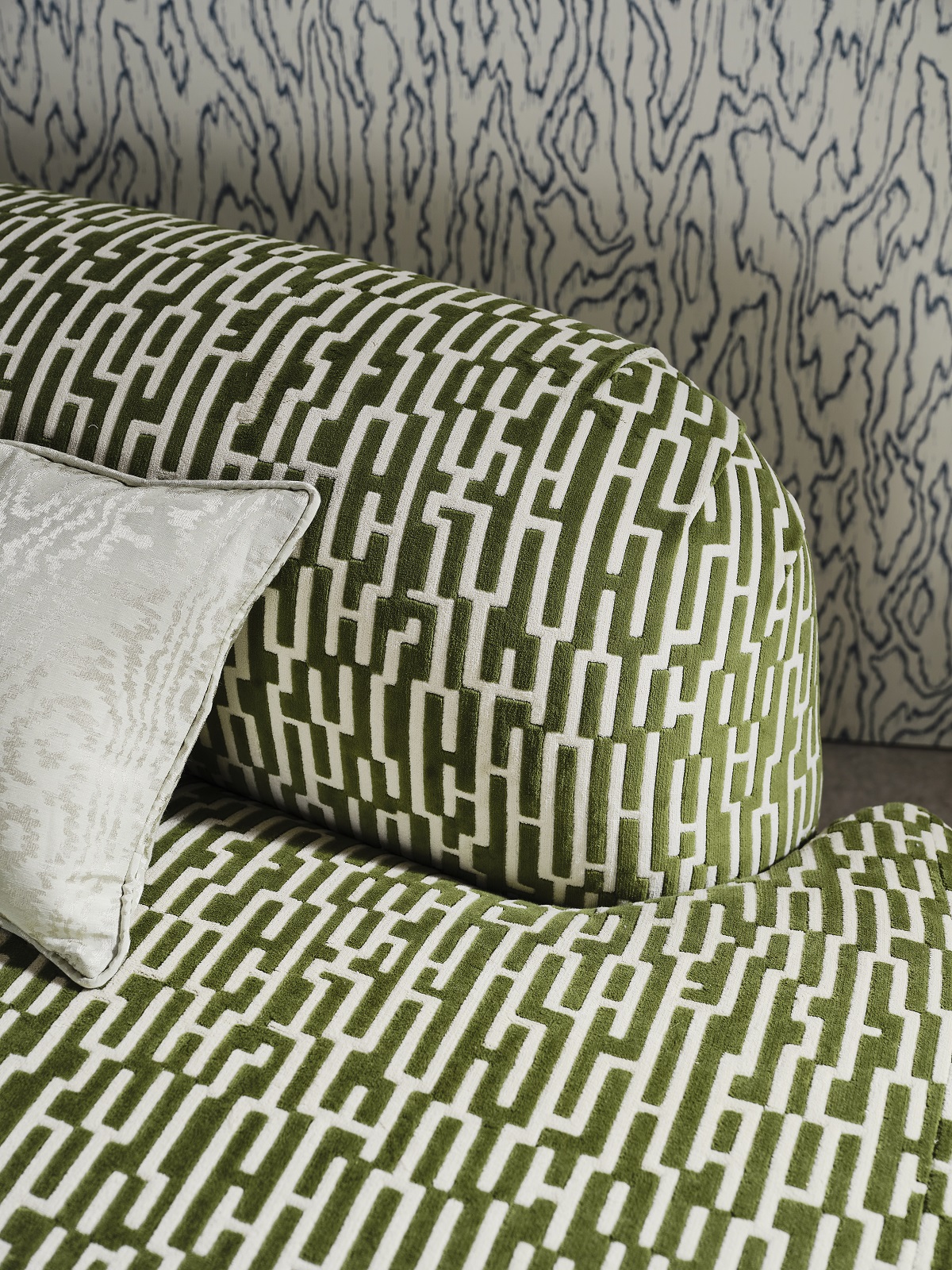 And finally, putting its stamp on the collection, Great Hey is a ladder design in Jacquard cotton velvet, which smartly places Holland’s signature ‘h’ in formation. the design appears almost hidden within the cloth.