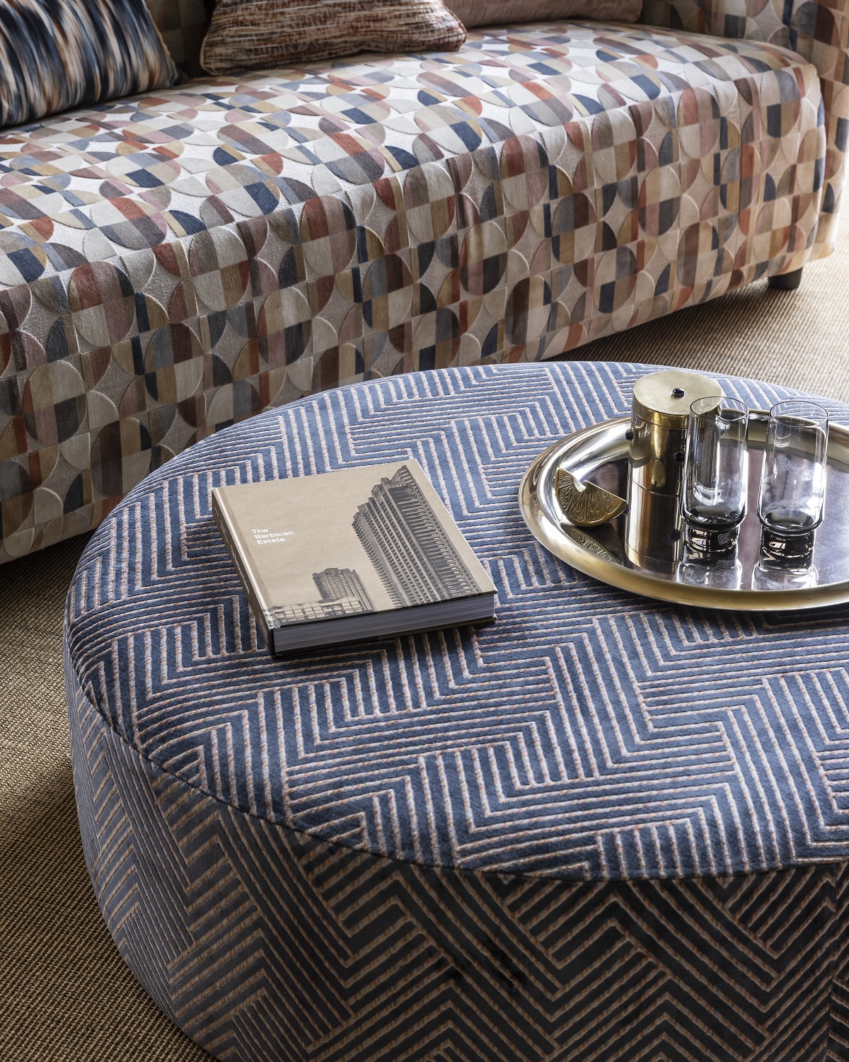 Taking its cue from the abstract aesthetics of Cubism, Urban transforms landscapes and objects into geometric artforms. Incorporating a range of statement designs on soft, cut velvet and one tactile weave, this expressive collection of stripes, circles and chevrons spans a rich colour palette in six fabric designs.