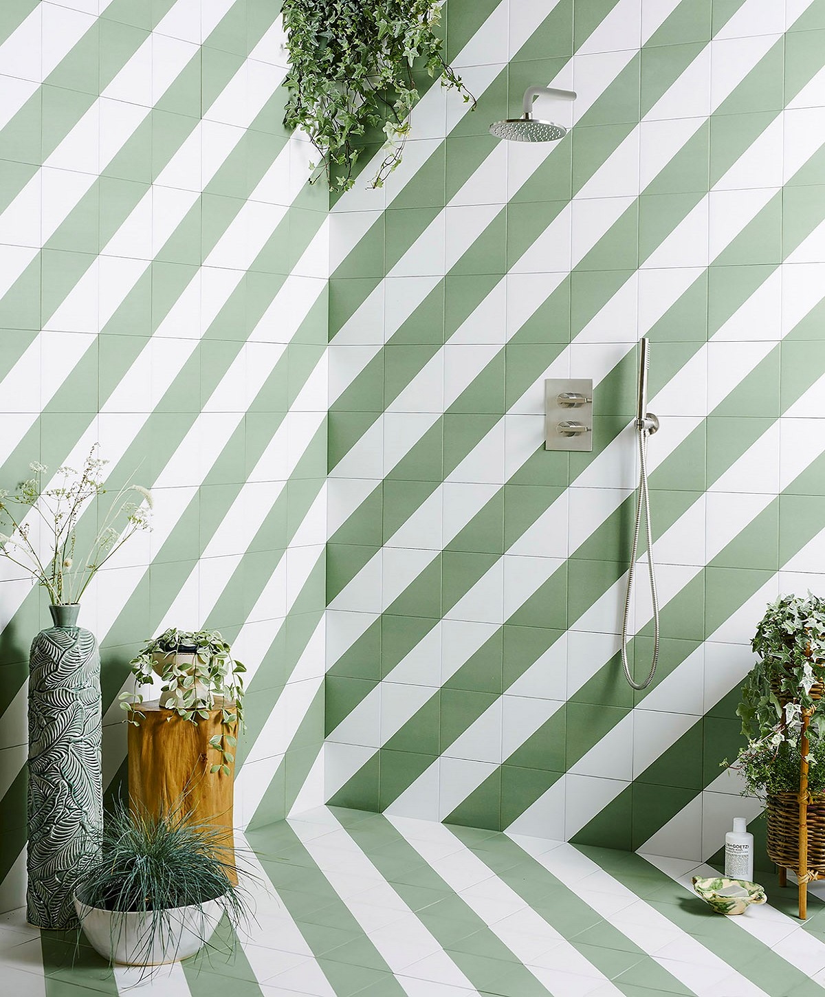 Led by the trend for minimalism and sleek surfaces, a decorative statement tile can be the perfect application for hotel showers and wet rooms. With more attention being focussed on wellness and the bathroom, creating a spa-like showering experience can be the differentiator in a design, and tiling is an integral part of that. With tiles forming the basis of a palette, the Green Alalpardo porcelain tile by Bert & May have been specifically designed for those who want to define their wet room space with a strong graphic statement. In another wetroom application, the Fennel Green Herringbone Honed Marble Tiles contrast beautifully with, while framing the gold finish on the brassware.
