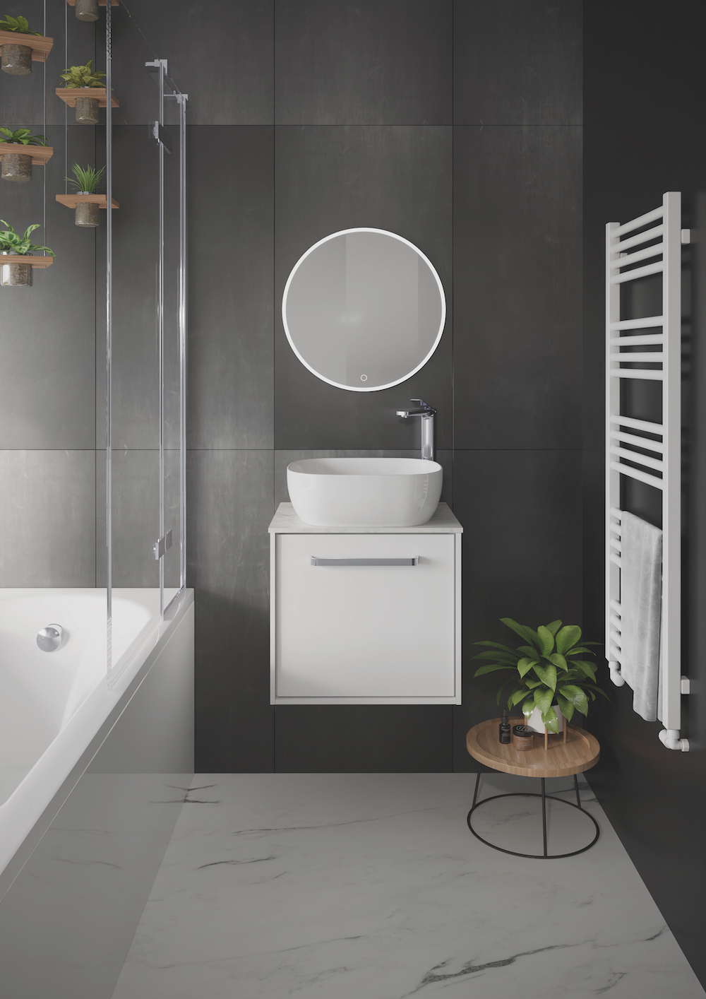 Available in three finishes, carrara marble effect, marquina marble effect, and cement effect, the tile front is the showpiece of the Infinity unit. Designed to replicate natural materials for a truly authentic aesthetic, each tile varies slightly in its tone, pattern, and colour. For the indecisive shopper, Crosswater recommends investing in all three tile fronts, enabling a quick and simple design update whenever the bathroom needs a refresh.
