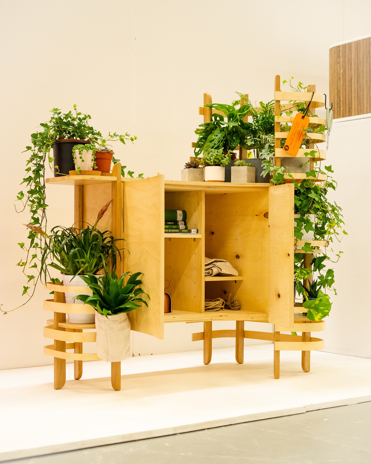 Luke Rawlinson was the competition’s other winner, using UPM’s Grada2000 Birch Plywood to breath-taking effect in an elegant, biophilic-themed storage cabinet. Taking advantage of the material’s thermoformability, he adopted an innovative approach to the design by accentuating Grada2000’s signature ability to curve and stay curved. Light and modern, the sustainable credentials of the material were further enhanced with, curved shelving and ribbing on each side of the central storage unit, creating a pleasant visual contrast. Furthermore, the ribbed side act as a trellis from which creeping plant life can prosper, enhancing the natural theme Rawlinson intended.