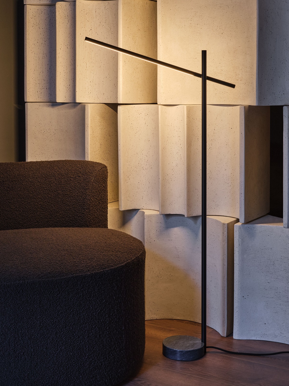 To provide the project with the right lighting, LedsC4 opted for luminaires in its Decorative collection. These included table and floor lamp models from the Tubs collection, with a unique design and mellow but powerful light projection, Tubs is perfect for large spaces. Voiles, the artisanal collection by Céline Wright, illuminates the space with its pendant model and its asymmetrical shape made with Japanese Washi paper. The final statement comes from Bloom, with its charming design and the simplicity of its forms, it completes the lighting project, standing out in the space given the gentle nature of its profile.