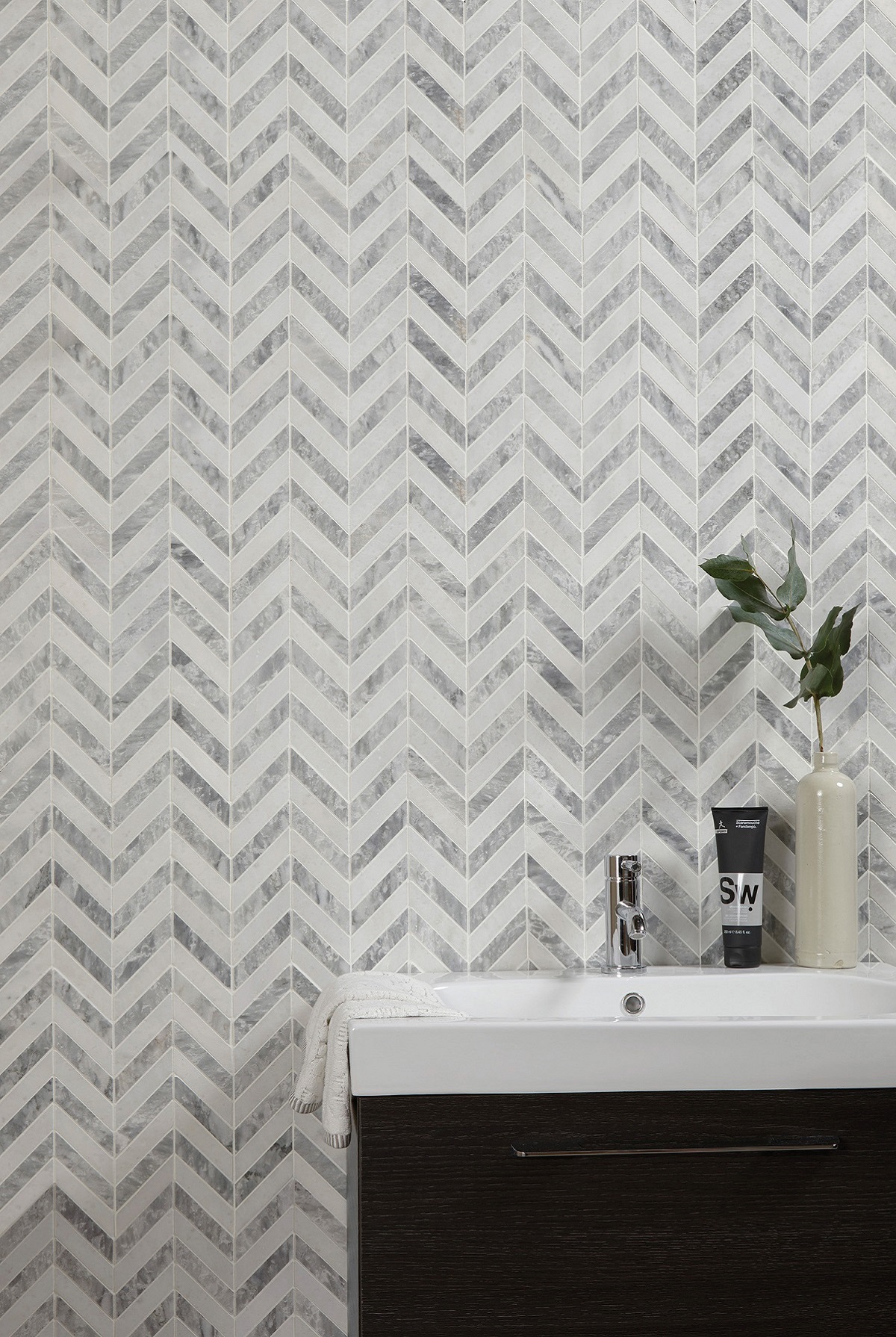 Available in a huge range of shapes and sizes, the Ca’Pietra Long Island Marble Honed Finish tile is endlessly versatile and are suitable for both walls and floors, with a honed finish. For admirers of the Art Deco aesthetic, the Ca’ Pietra Milan Silver Marble Mosaic tiles is available in three colours and incorporates a striking herringbone pattern that works beautifully as a decorative backdrop or statement floor section.