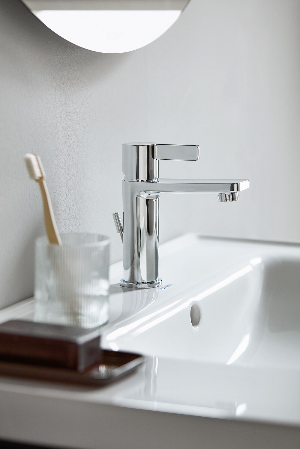 Understated and expressive, the D-Neo faucets, with their clear cut design, hold their own in any room and are the perfect default choice for any minimalistic design concept. This range is all about purity of design, with subtle colour tones and clear edges, all with a noticeable air of orderliness. This complete bathroom range has been created for Duravit by designer Bertrand Lejoly and offers a range of design elements suitable for an urban lifestyle by simply jettisoning anything superfluous.