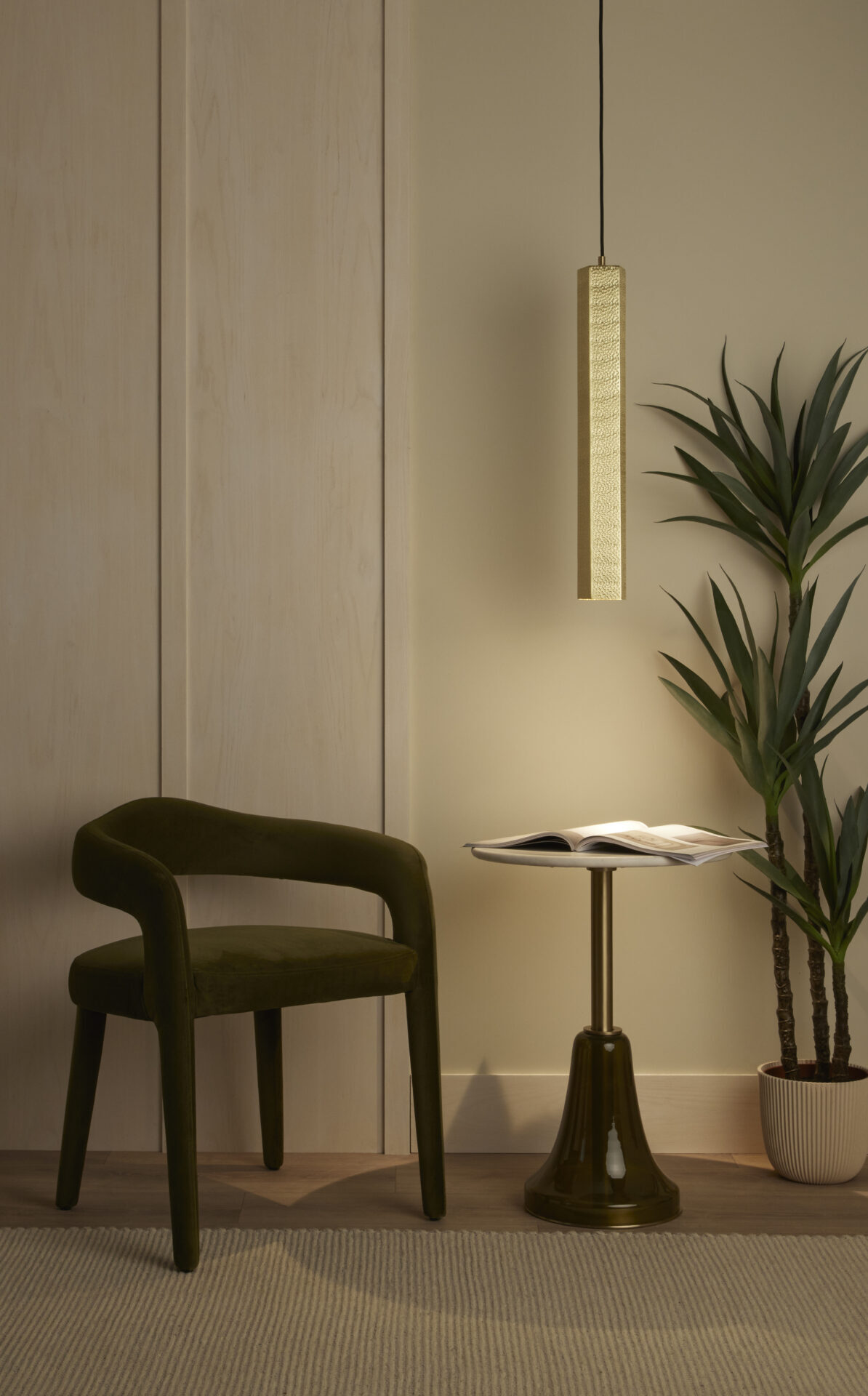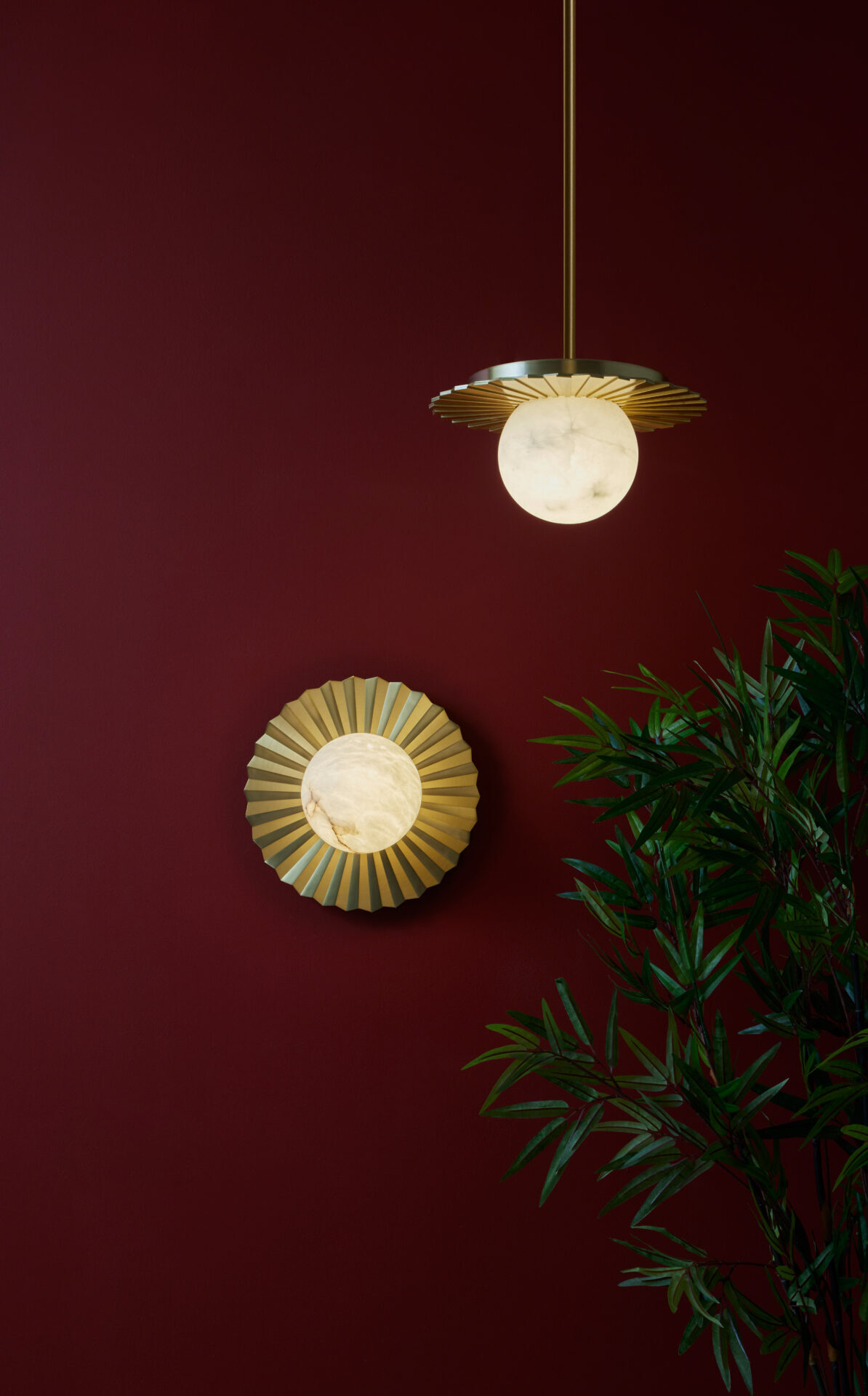 Each piece draws inspiration from global cultures and the natural world, echoing landscapes, heritage motifs, and organic materials. Sculptural silhouettes, hammered metal finishes, and veined alabaster come together in a rich interplay of shadow, reflection, and luminosity. The result is a portfolio of statement lighting that feels both timeless and fresh, and rooted in tradition yet bold in expression.