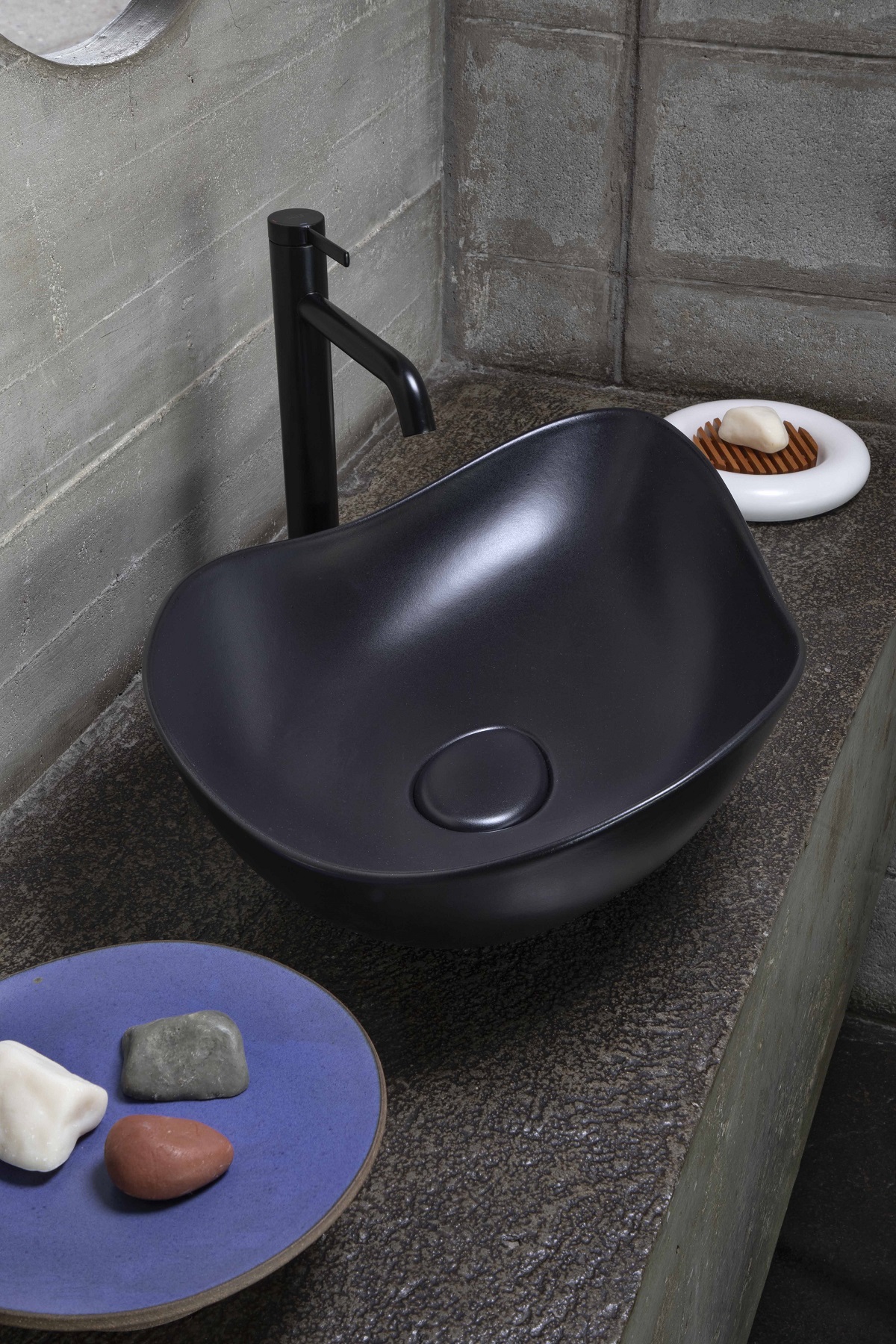 The updated Ohtake collection now comprises three countertop basins available in seven finishes: Pearl, Beige, Coffee, Onyx, Gloss White, Matt White and the new Matt Black.