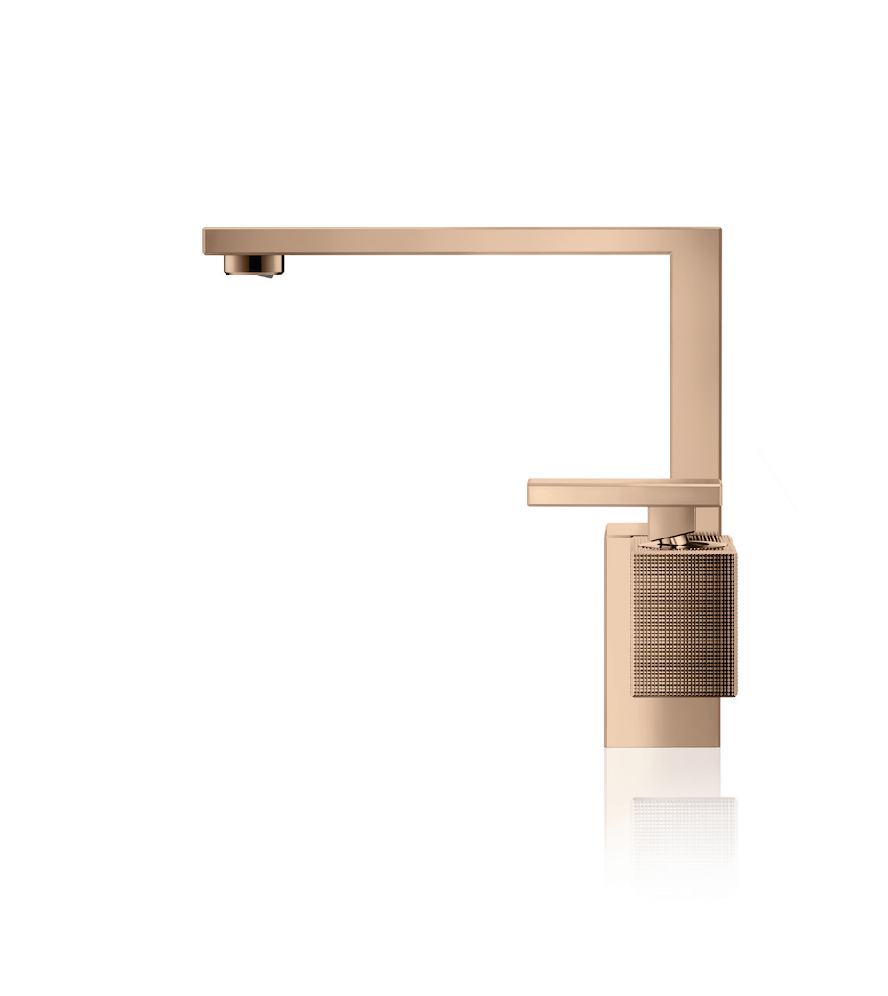 Every element of the mixer, including the handle and the spout, has perfect 45° chamfers. Ordinarily recognised in the field of construction as a safety measure, here the chamfers pay testament to the small architectural details and overall virtuosity of design.