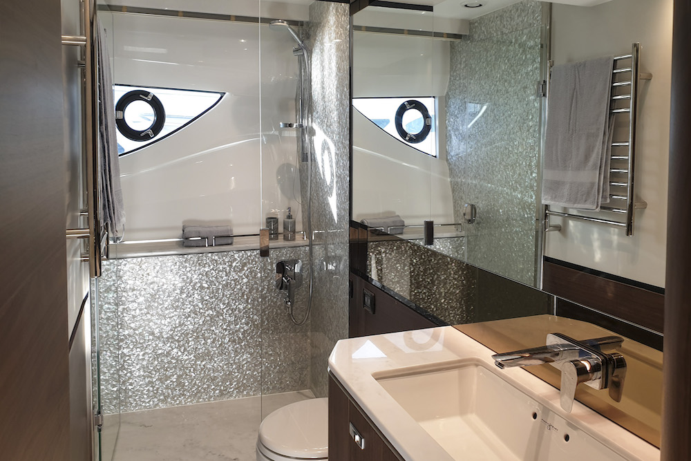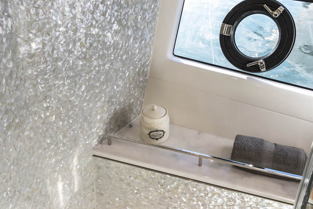 Siminetti supplied a large number of stunning ‘Crackle‘ decorative panels to Aquamare Marine Ltd (UK) for installation within all three bathrooms of a Princess Yacht. Specially requested by the client, the installation of ‘Crackle’ on a yacht is a first and the results speak for themselves…