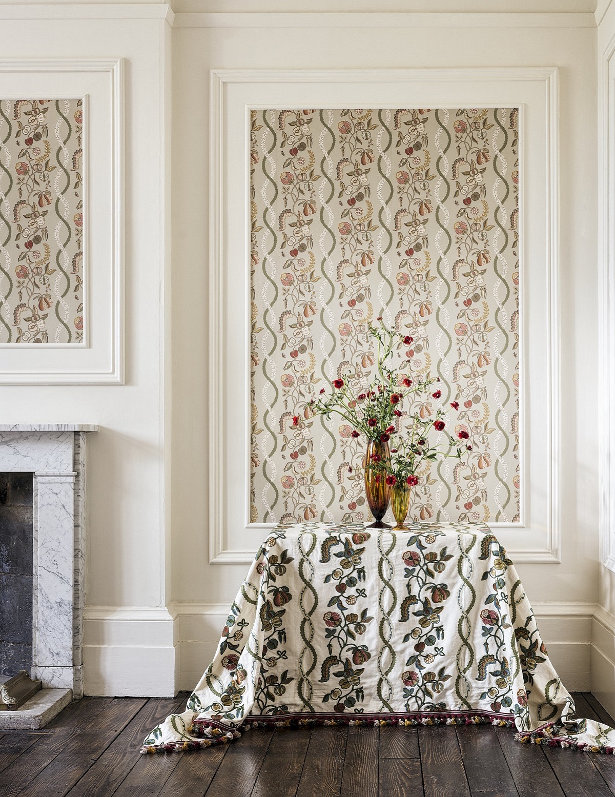 108 exquisite wallpapers, fabrics, weaves and embroideries, including a collection of striped linens, tell a captivating visual story of Highgrove Gardens and reflect the very special nature of this unique collaboration.